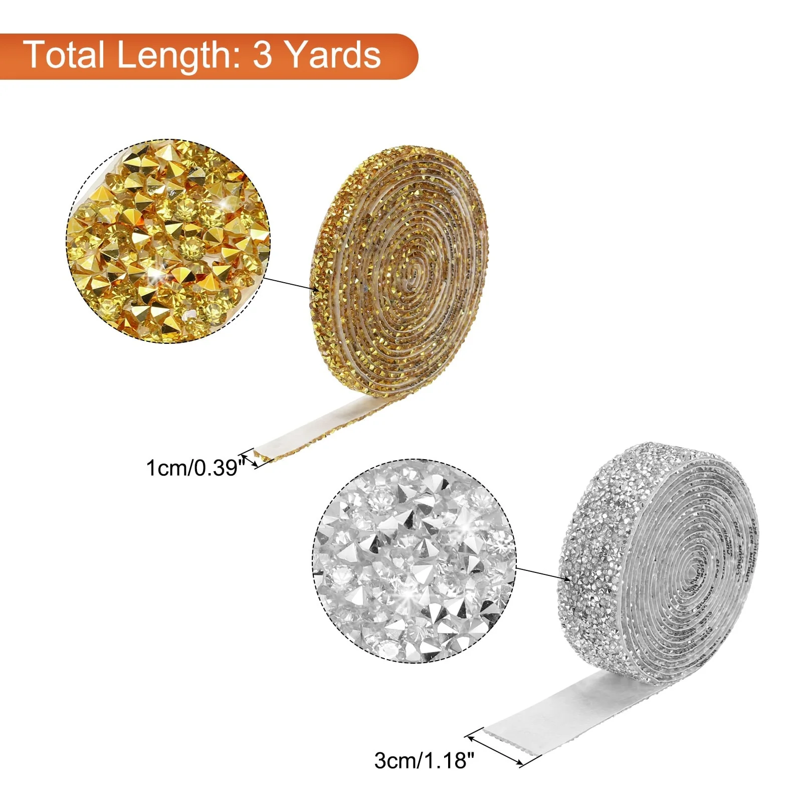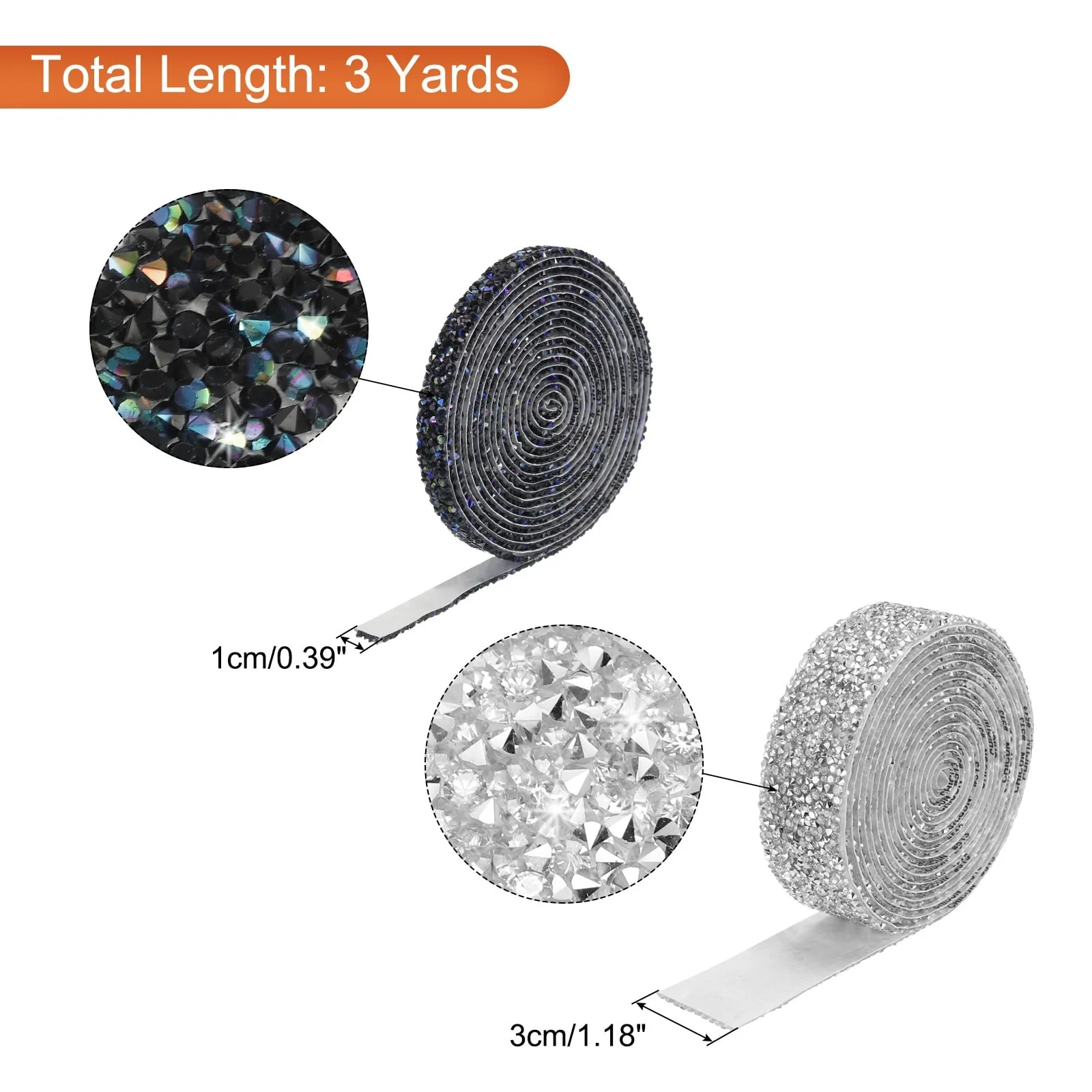 2. The resin diamond ribbon has a double-sided tape, you can cut the size you want according to your needs, directly tear off the tape on the back during use, and stick it directly on the surface of the item.