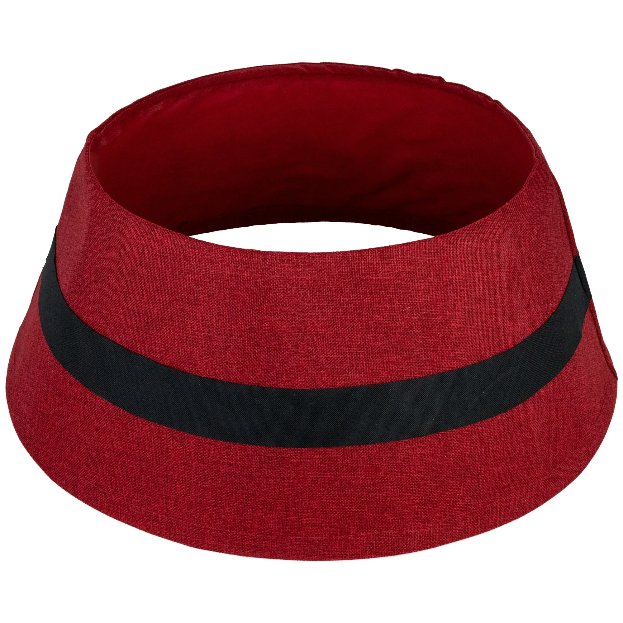 Create a unique look this season, with this twist on Santa's suit as a Christmas tree collar. Featuring his iconic belt. Unlike a traditional tree skirt, it stays put, neat and tidy. It covers the unsightly tree stand without having to reposition. The perfect accessory for the curated, holiday home.