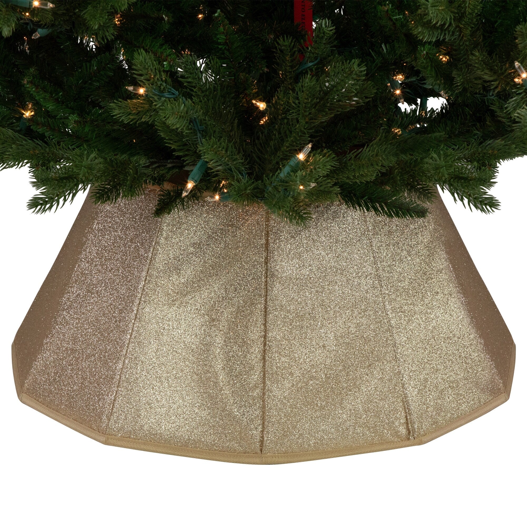 Create a unique look this season, with this metallic,glittery gold fabric Christmas tree collar. Unlike a traditional tree skirt, it stays put, neat and tidy. It covers the unsightly tree stand without having to reposition. The perfect accessory for the curated, holiday home.