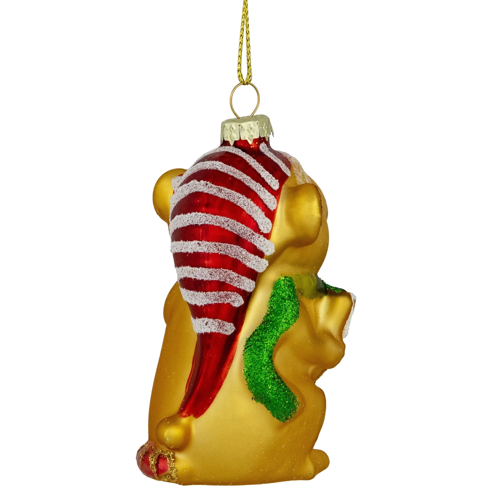 Get into the holiday spirit with this adorable Christmas mouse glass ornament! This charming little mouse is dressed in a red and white hat, wrapped snugly in a green scarf, and holds a miniature Christmas carol book. The ornament sparkles with gold and iridescent glitter accents, adding a touch of magic to your holiday decor. It's the perfect addition to any holiday collection and makes a wonderful gift for animal ornament lovers and Christmas enthusiasts alike.