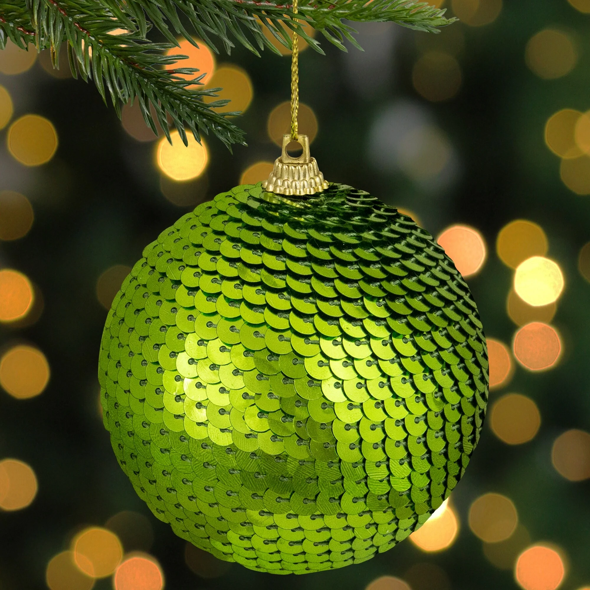 This unique ornament would be a perfect addition to your Christmas tree or a great gift for that special person in your life! This ball ornament features kiwi green sequins that cover the entire ornament for an eye catching look. Shatterproof ornaments combine the beauty and luster of real glass with the unbreakable practicality of plastic.