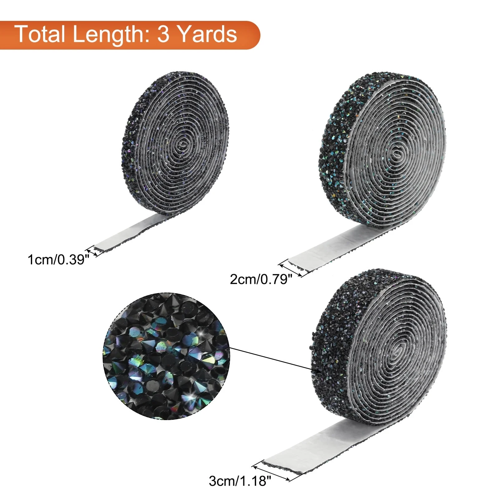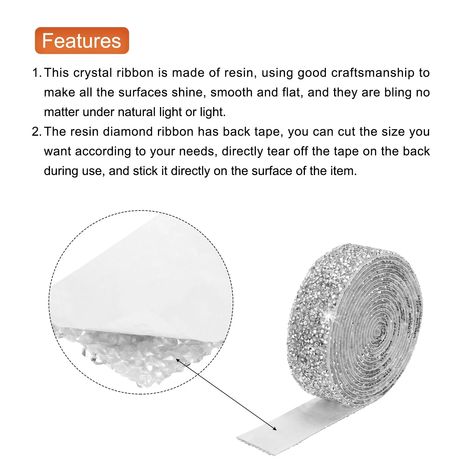 2. The resin diamond ribbon has a double-sided tape, you can cut the size you want according to your needs, directly tear off the tape on the back during use, and stick it directly on the surface of the item.