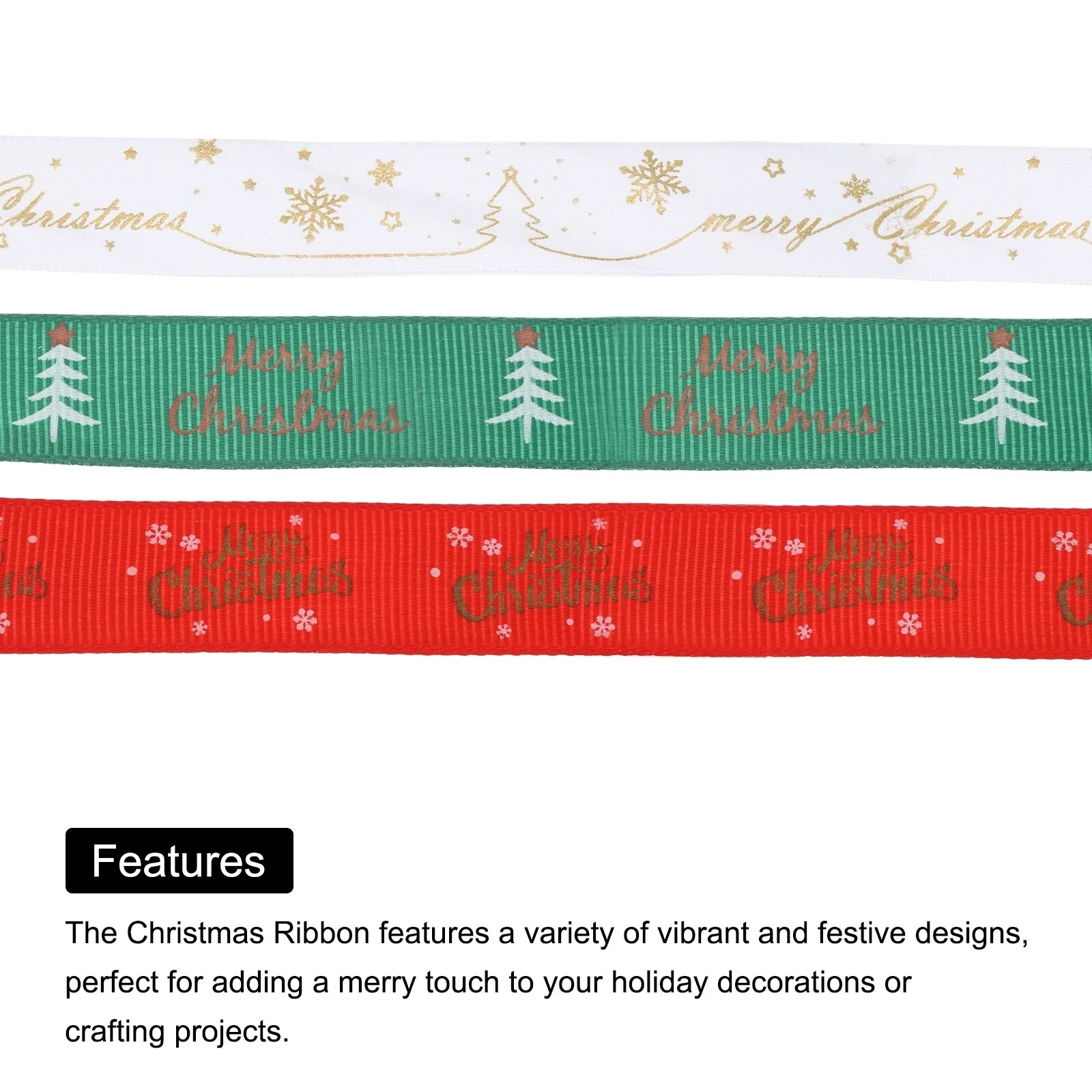 The Christmas Ribbon features a variety of vibrant and festive designs, perfect for adding a merry touch to your holiday decorations or crafting projects. This ribbon can be used in numerous ways, including gift wrapping, creating bows, decorating Christmas trees, wreaths, stockings, or DIY crafts.