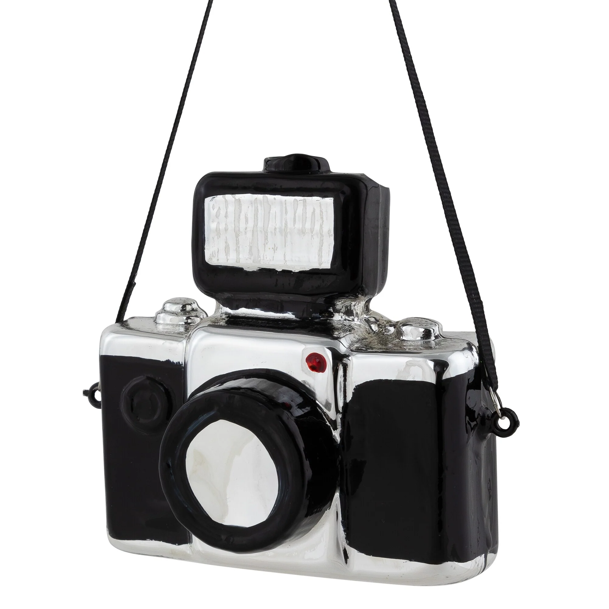Capture the magic of the holiday season with this camera glass ornament. This miniature masterpiece combines the nostalgia of classic photography with the joy of Christmas. It features details resembling a vintage camera, complete with flash and camera strap. Hang it on your tree and let its unique charm transport you to a world of memories and creative inspiration. A perfect gift for photography enthusiasts and those who appreciate the artistry of the past, this ornament adds a touch of sophistication to any holiday decor!
