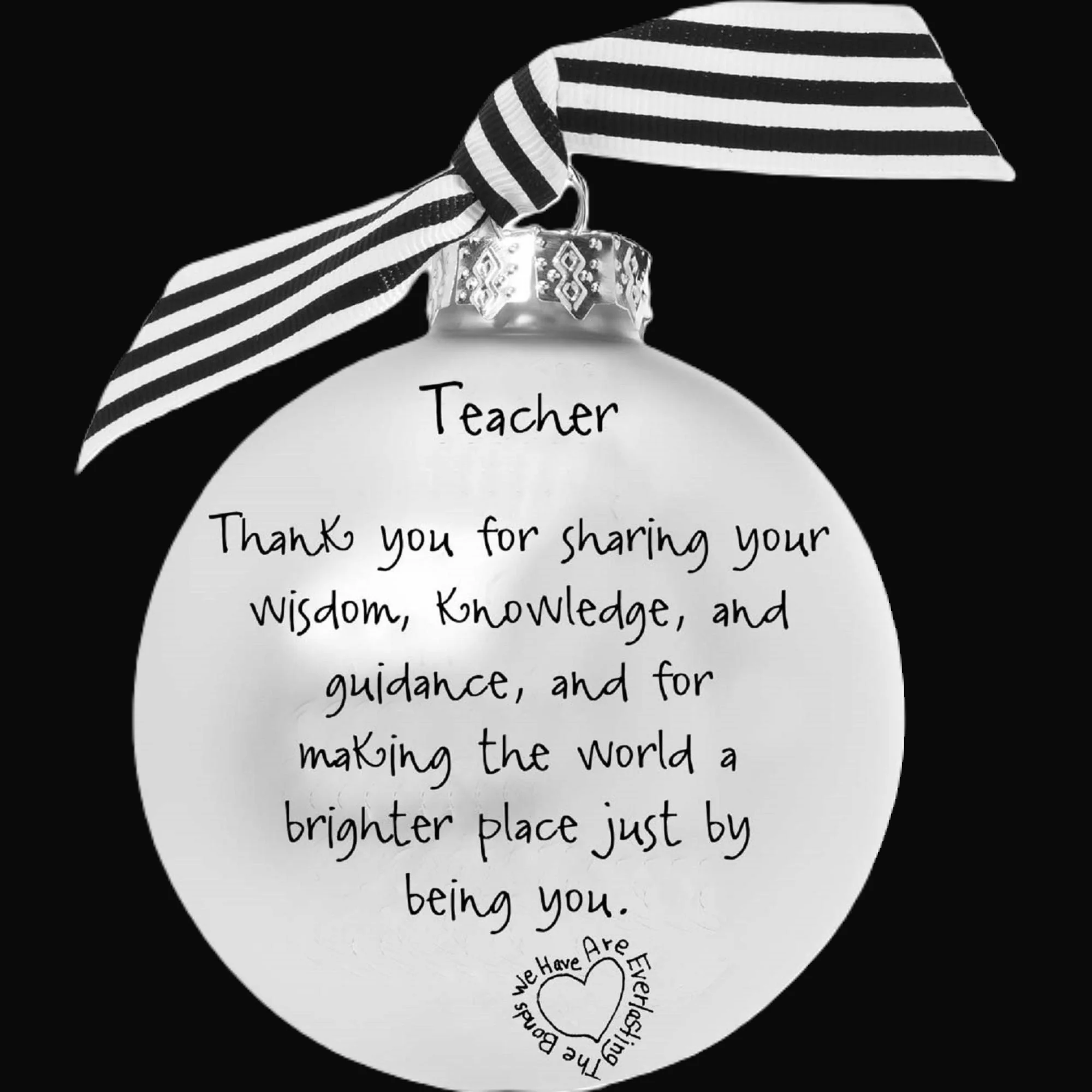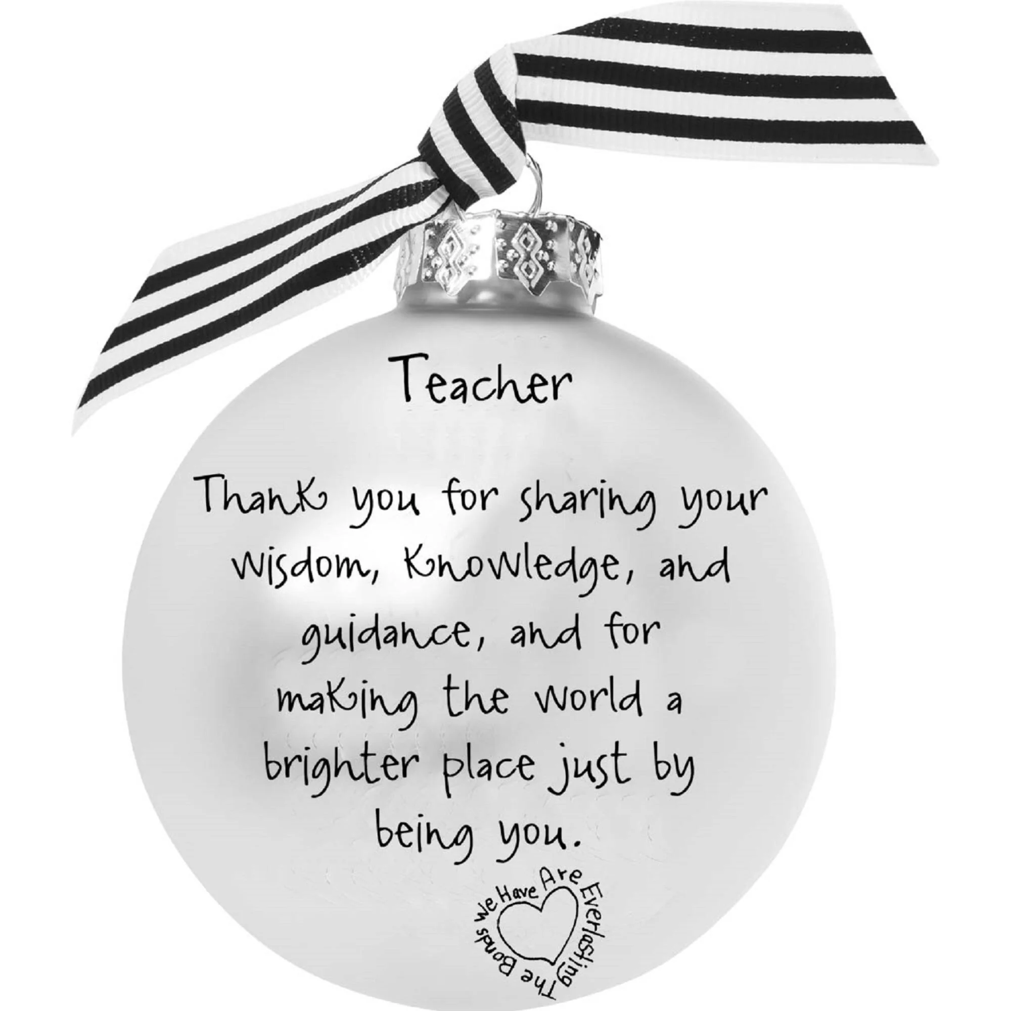 Adorn your tree with the timeless elegance of this silver Christmas ball ornament. This inspirational ornament offers positive gratitude and love. A perfect gift for that special someone.