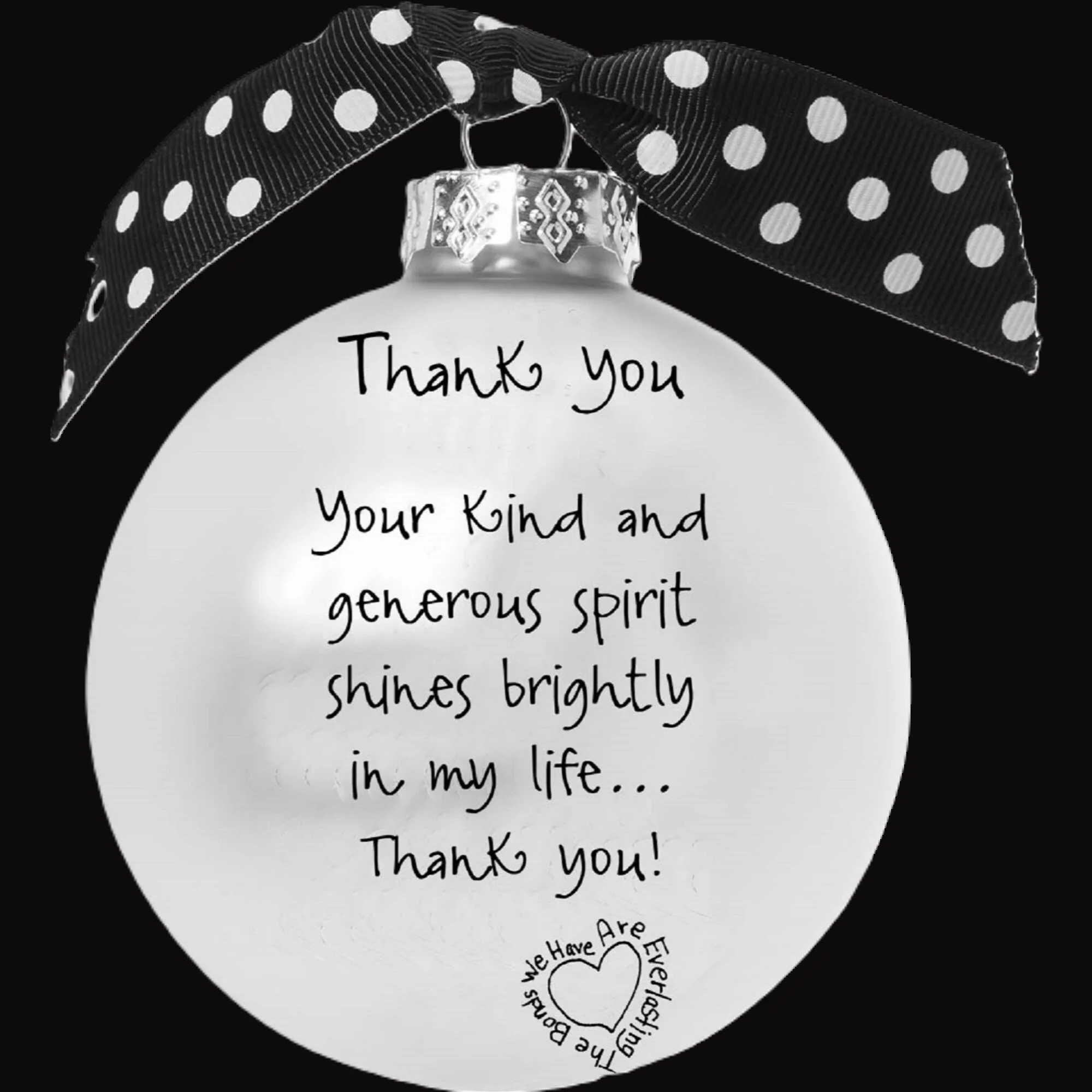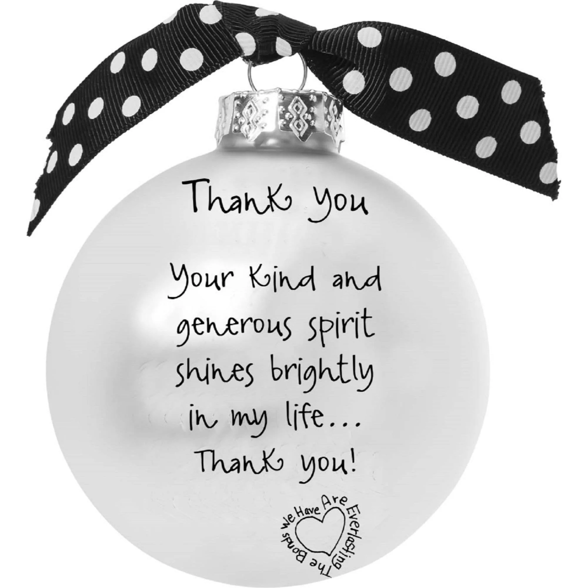 Adorn your tree with the timeless elegance of this silver Christmas ball ornament. This inspirational ornament offers positive gratitude and love. A perfect gift for that special someone.