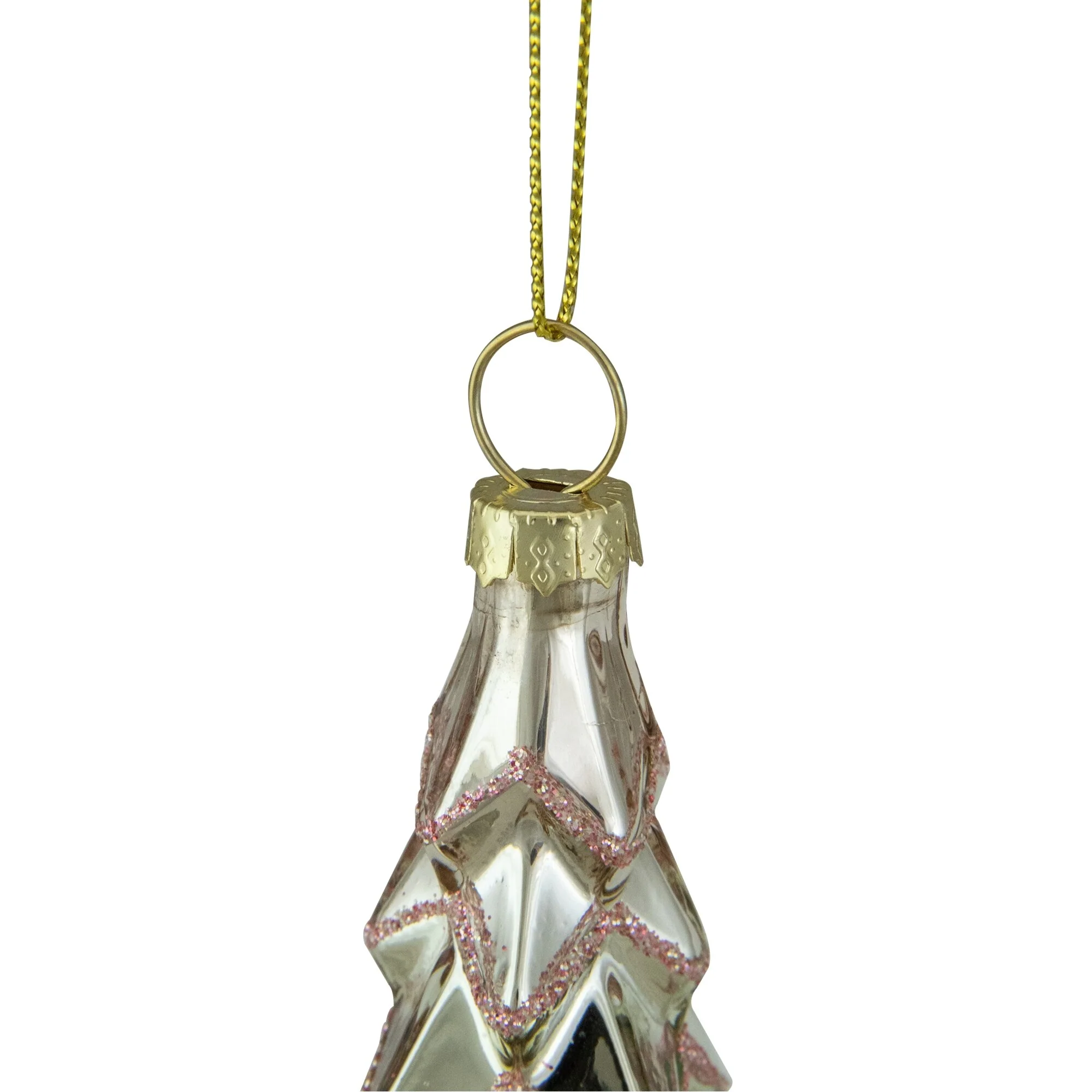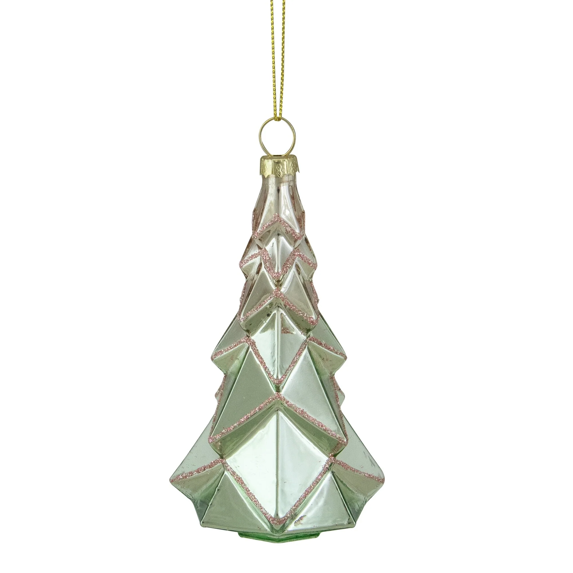 This unique tree ornament is the perfect accent to your holiday decor. Pastel green glass is accented by pink glitter, giving it the perfect amount of sparkle. Amazing on a tree or as part of your holiday table centerpiece.