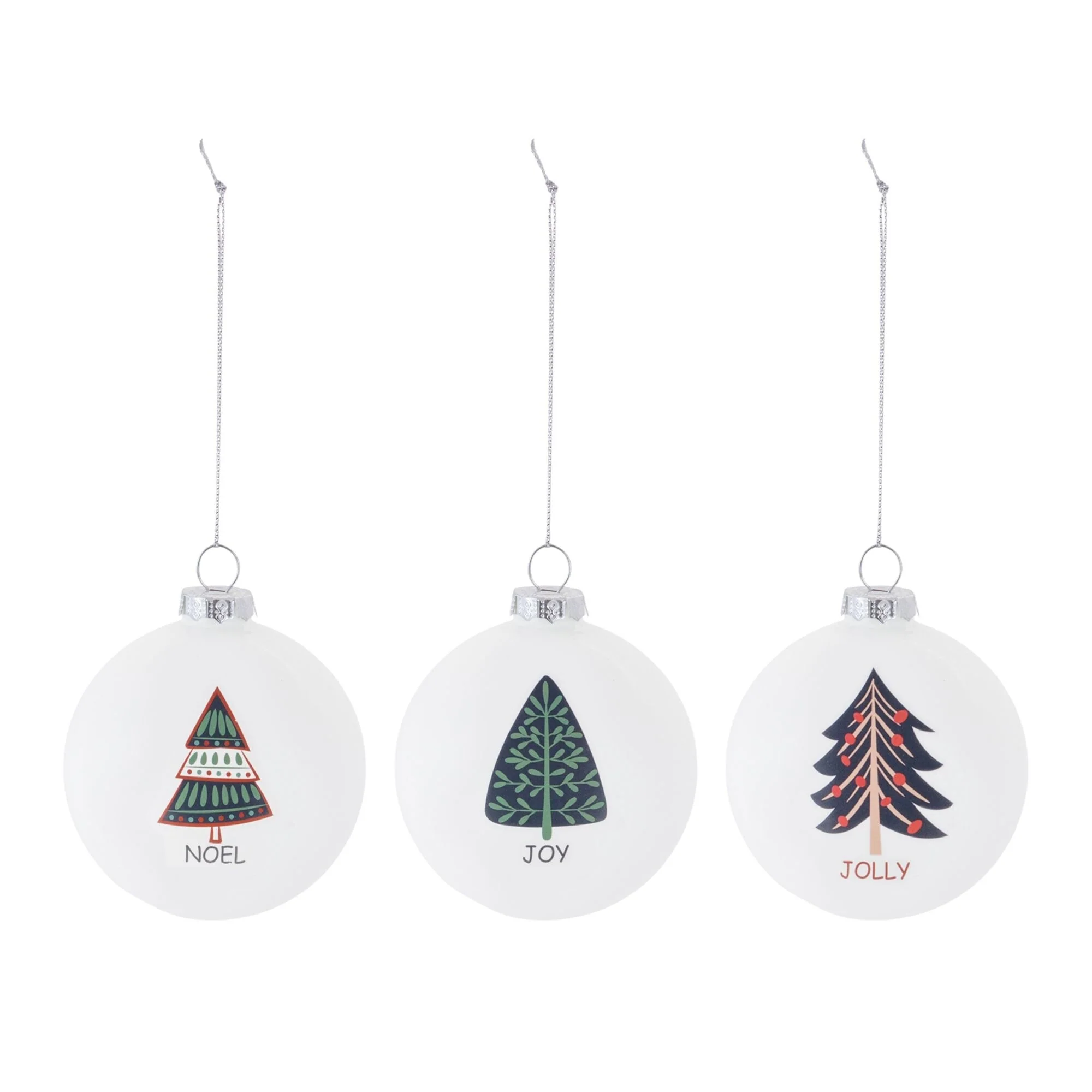 Elevate your holiday décor with our charming white ball ornaments. This set of 6 features three assorted tree designs and festive sentiments—Noel, Joy, and Jolly—printed on each ornament. Perfect for adding a cozy touch to your tree, wreath, or any holiday display, these ornaments create a warm and inviting atmosphere for the season. Add a festive flair to your home with this delightful set, and make your holiday moments extra special!