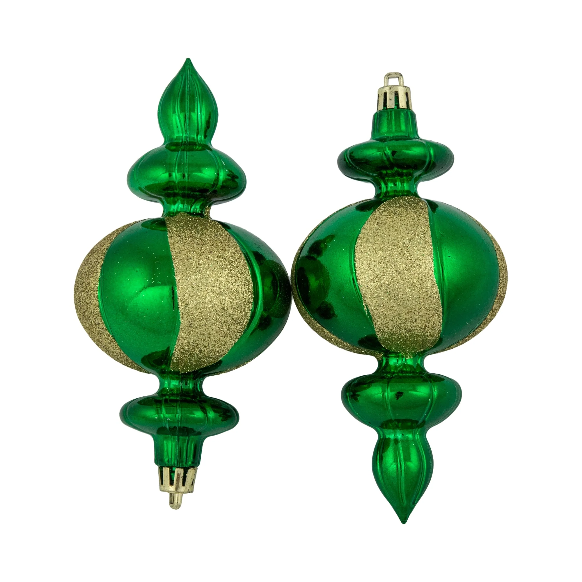 Finial ornaments are one of a kind! An unique shape with fresh colors. The ornaments are equipped with ornament caps and come ready to hang from a gold cord. The beautiful finish provides the perfect amount of glimmer to your tree. Shatterproof ornaments combine the beauty and luster of real glass with the unbreakable practicality of plastic