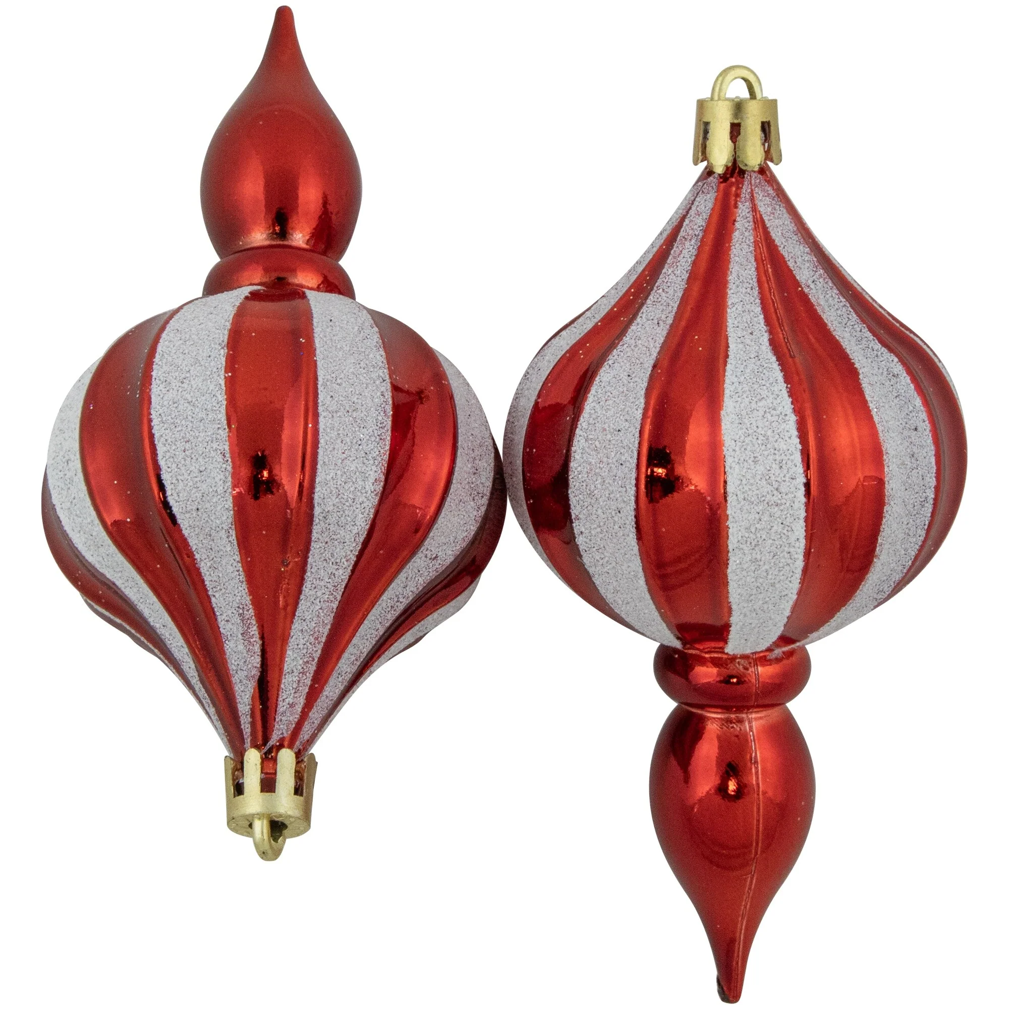 8ct Red and White Shatterproof Finial Christmas Ornaments, 4.75"