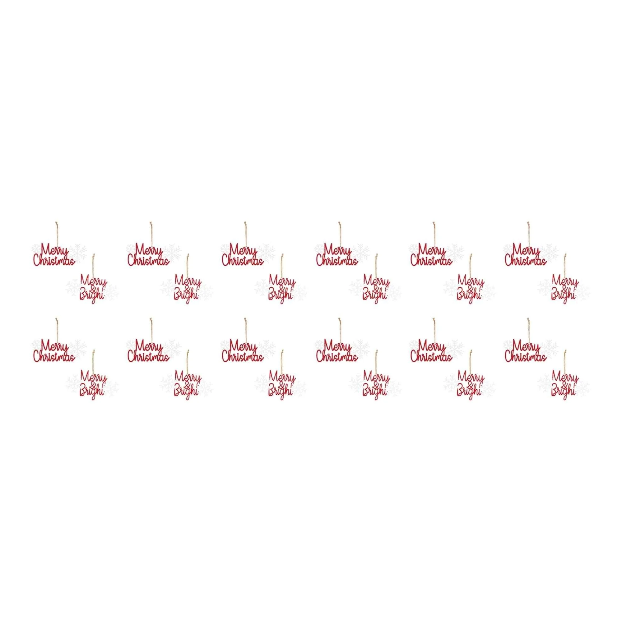 Infuse your Christmas tree with heartfelt sentiments using our stunning set of holiday sentiment ornaments. This 12-piece collection features festive red and white tones, adorned with traditional "Merry Christmas" and "Merry & Bright" messages, along with elegant cut-out snowflake designs. Each hangs gracefully from a delicate jute string, promising lasting joy. Whether adorning your home or gifted to loved ones, these ornaments will surely evoke smiles and add a traditional touch of cheer to your holiday decor.