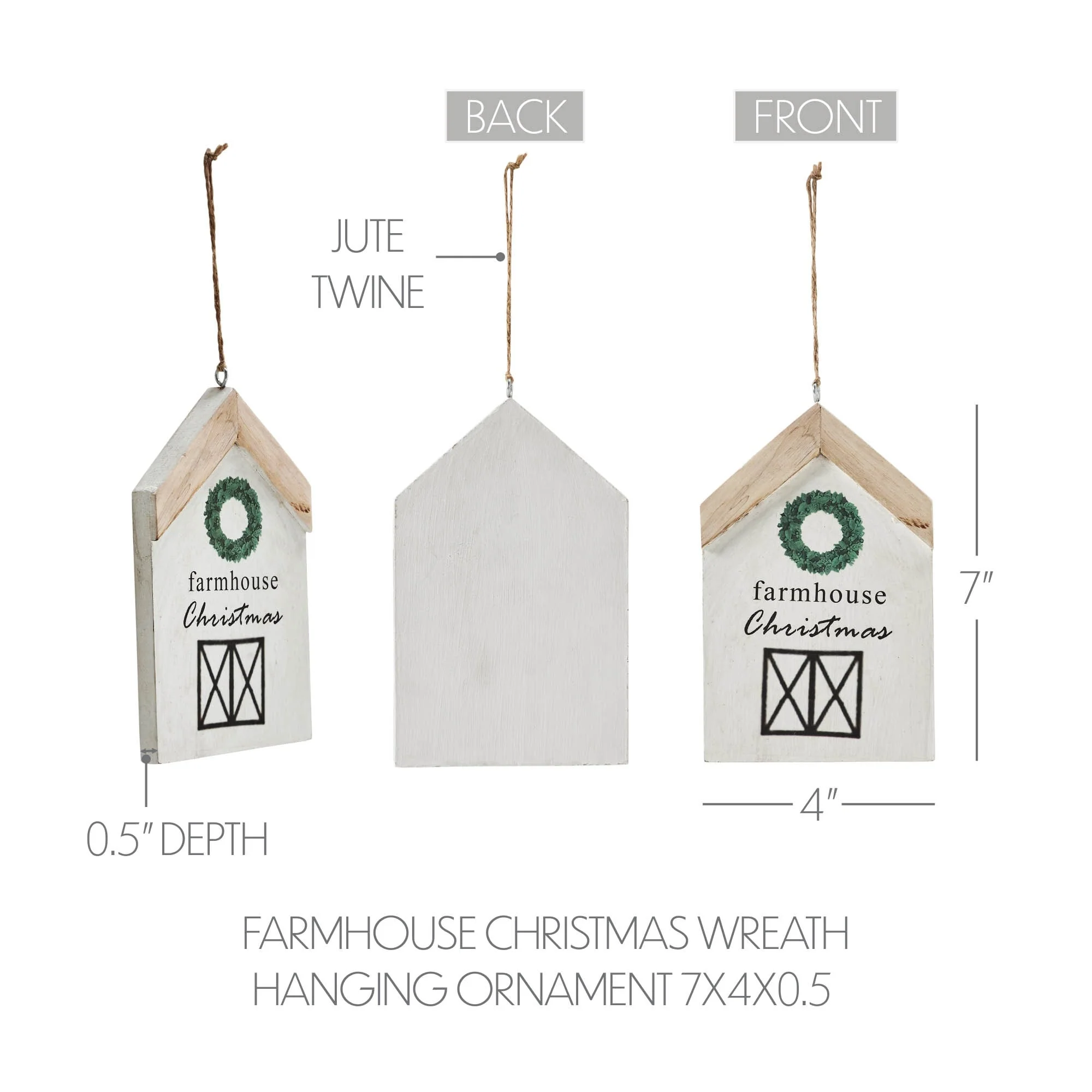 Introducing the VHC Brands Farmhouse Christmas Wreath Hanging Christmas Ornament, a delightful addition to your holiday decor that brings rustic farmhouse charm to your Christmas tree. Crafted from tropical wood, this ornament features a charming house-shaped design adorned with the words Farmhouse Christmas adding a festive and welcoming touch to your seasonal decorations. Measuring 7x4x0.5 inches, it is perfectly sized to hang on your Christmas tree or to display on hooks, doorknobs, or anywhere else you wish to spread holiday cheer. With its light creme, Christmas green, and country black color palette, this wooden ornament embodies the cozy and inviting atmosphere of a farmhouse Christmas. The distressed appearance adds to its rustic charm, giving it a weathered look that evokes memories of holidays spent in the countryside. Whether displayed in the dining room, entryway, or living room, this ornament infuses your home with the warmth and joy of the holiday season. Elevate your Christmas decor with the VHC Brands Farmhouse Christmas Wreath Hanging Christmas Ornament, a charming accent piece that captures the spirit of the season. Its farmhouse-inspired design and printed Farmhouse Christmas message make it a unique and memorable addition to your holiday traditions, while its durable tropical wood construction ensures years of enjoyment. Whether used to decorate your own home or given as a thoughtful gift, this charming ornament is sure to be treasured for years to come.