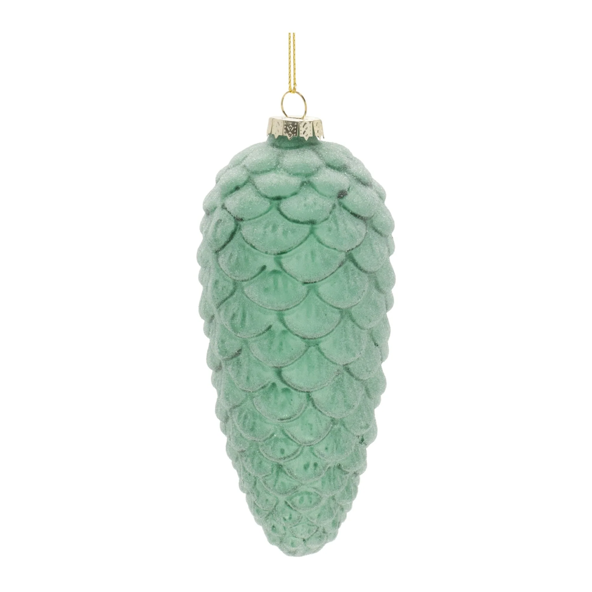 Add woodland elegance to your holiday display with these frosted glass pinecone ornaments. Featuring soft green tones and a frosted glass finish, each ornament captures the quiet beauty of winter. The natural pinecone shape adds rustic charm, while the silver cap and delicate string hanger offer an elegant finishing touch. Perfect for adorning your Christmas tree, wreath, or seasonal garland with a serene, forest-inspired flair.