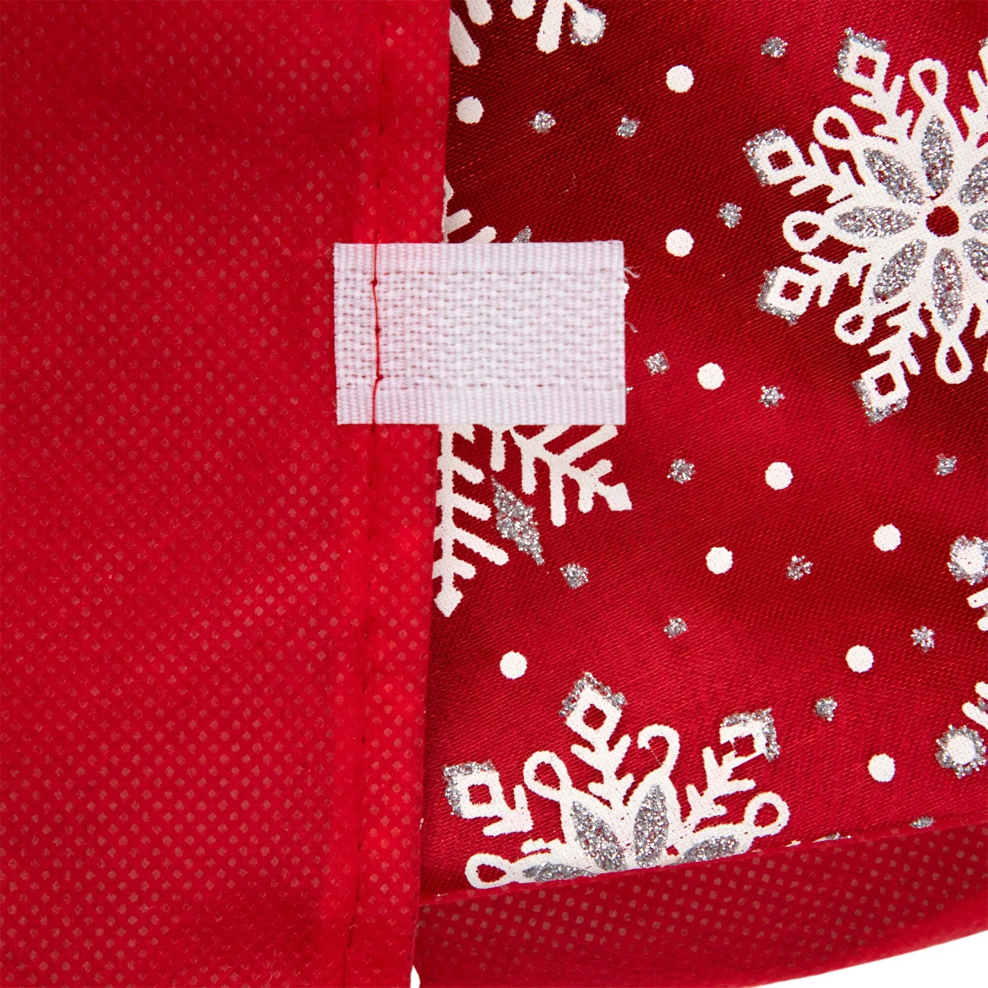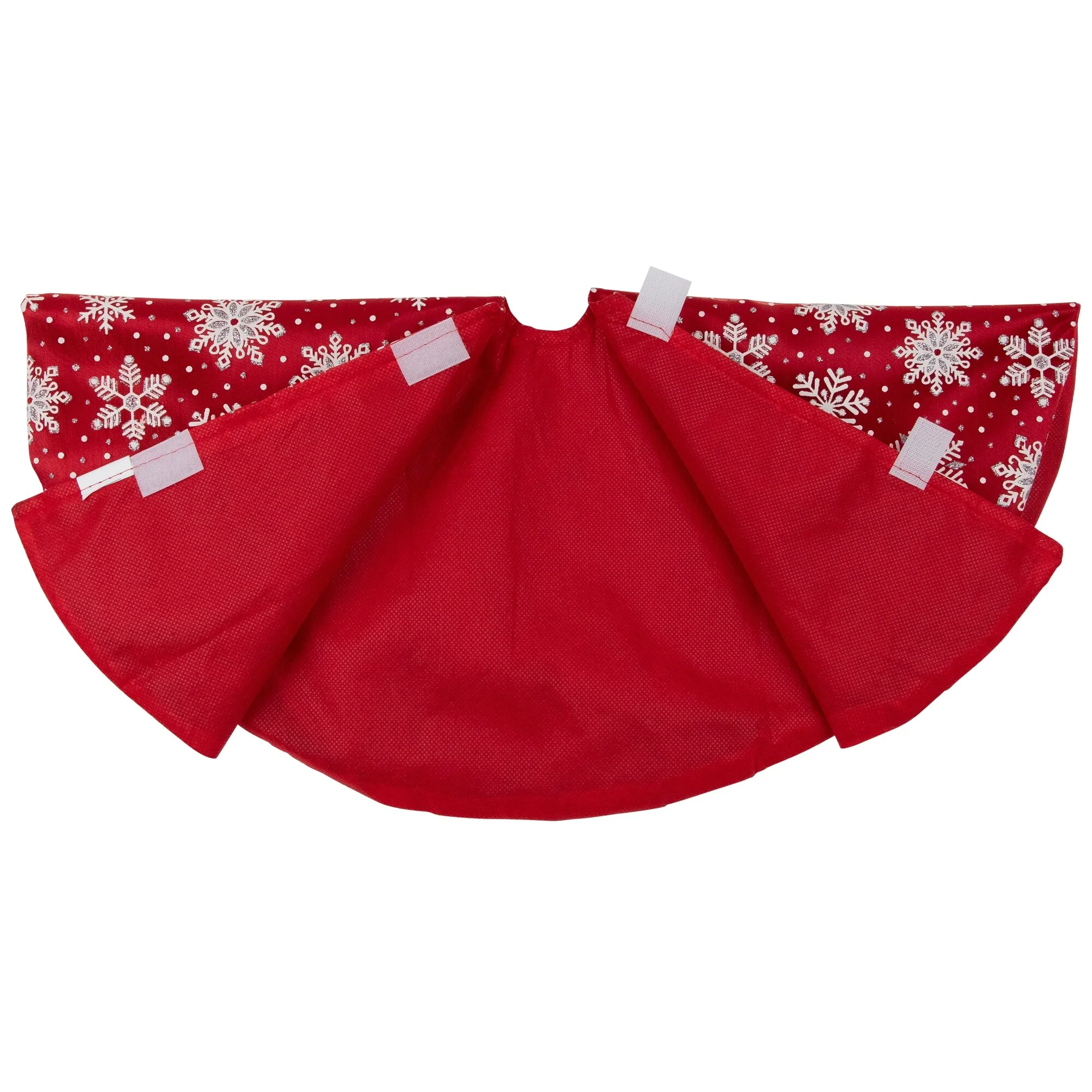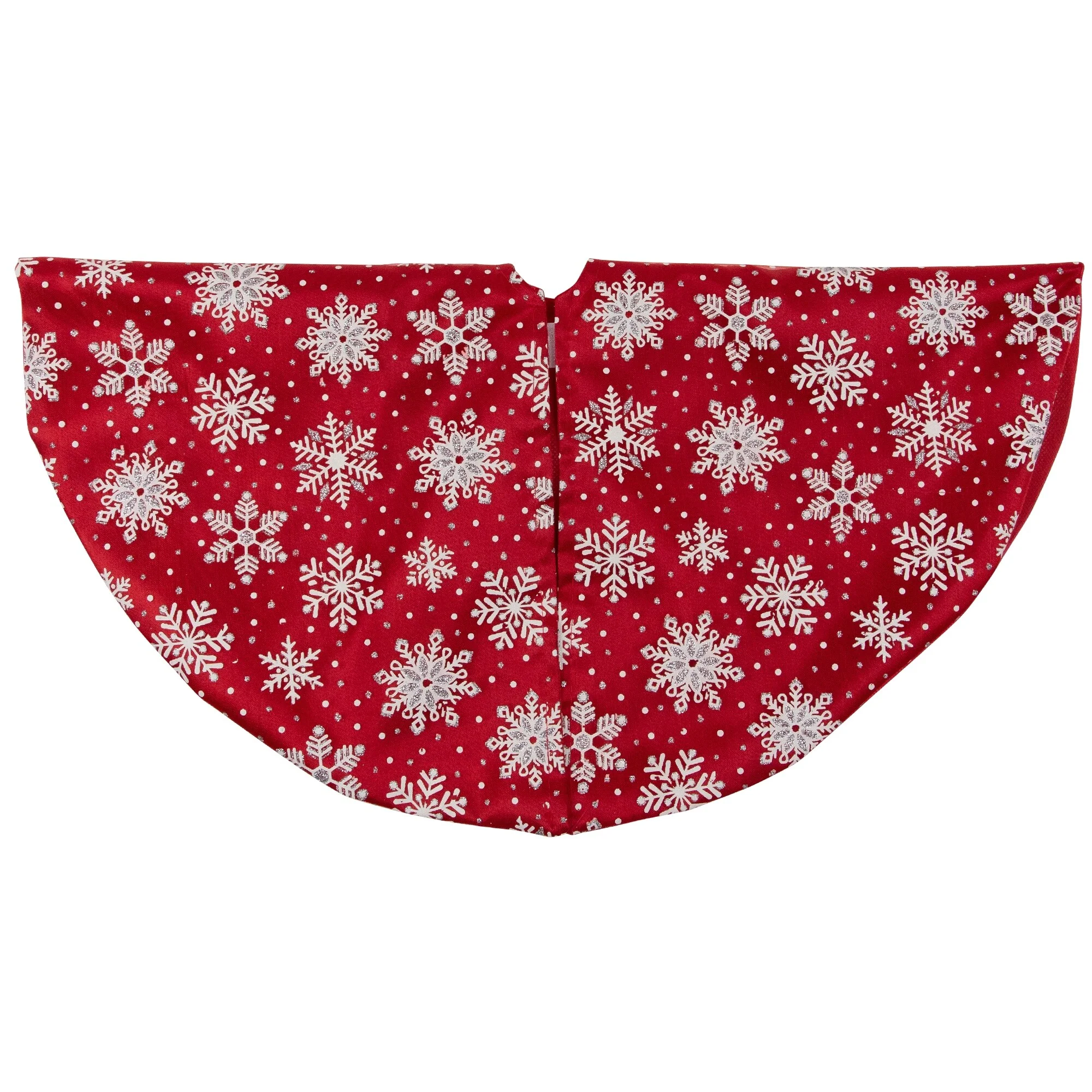 Add some sparkle to your Christmas decor this year. The tree skirt is red with white snowflakes that have glitter accents, perfect for adding an extra bit of glitz your holiday decor. Perfect for all kinds of holiday decorations including tree trimming, mantle displays, table tops, centerpieces and more!