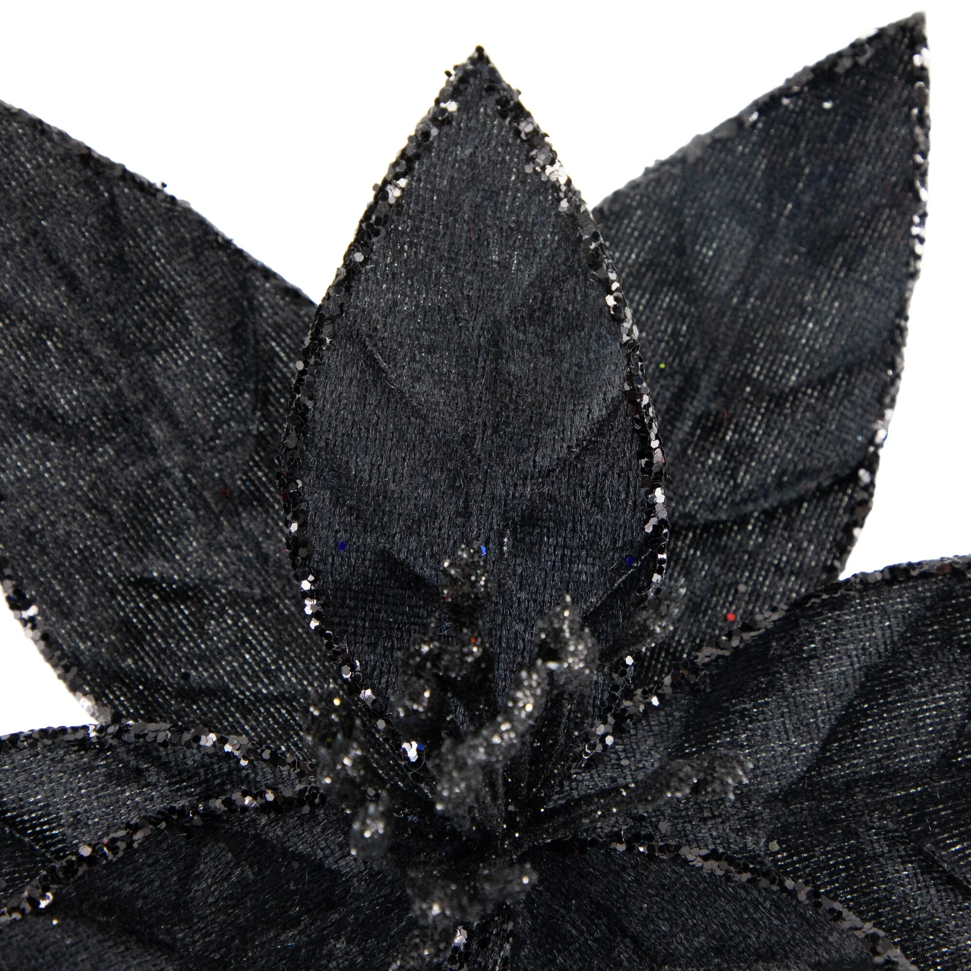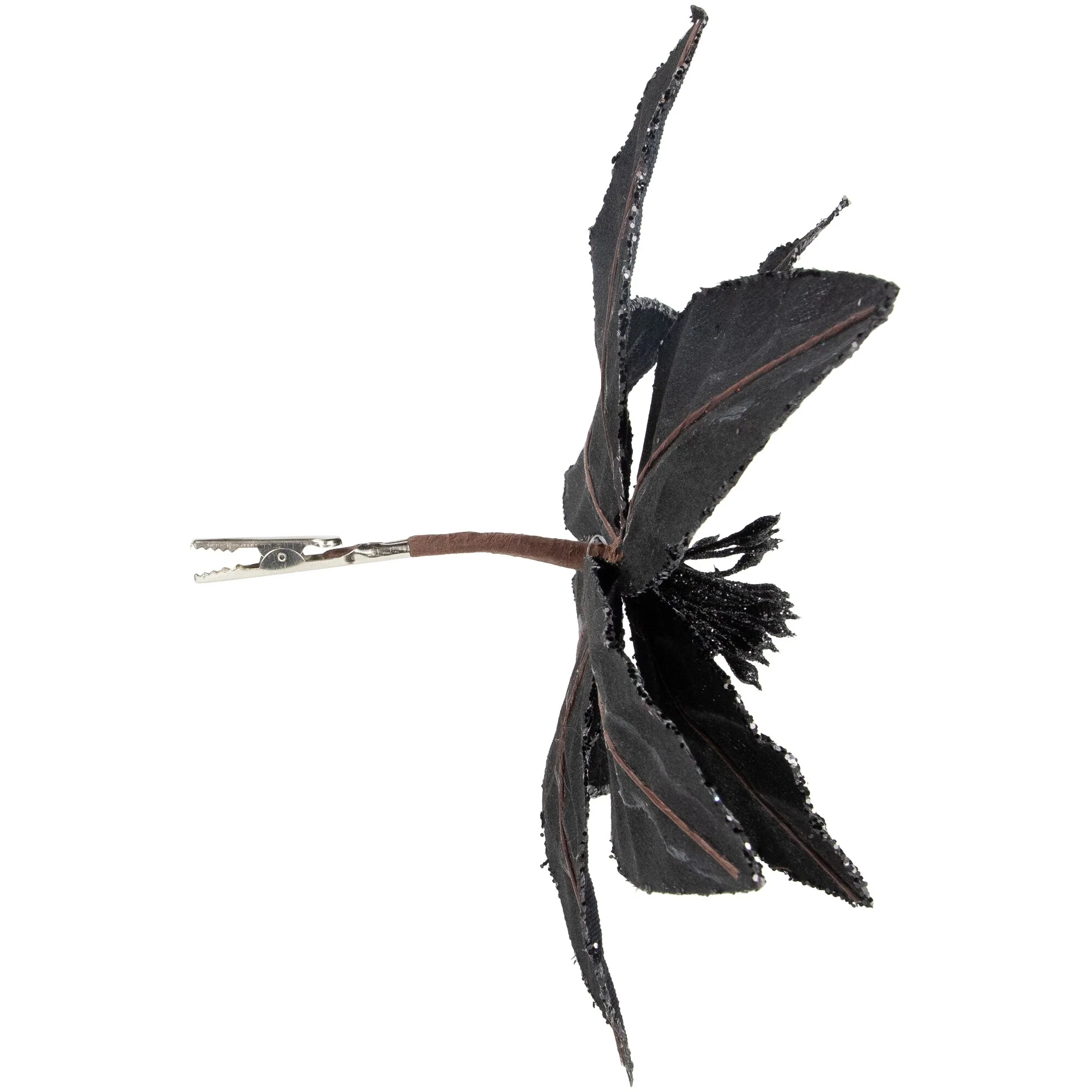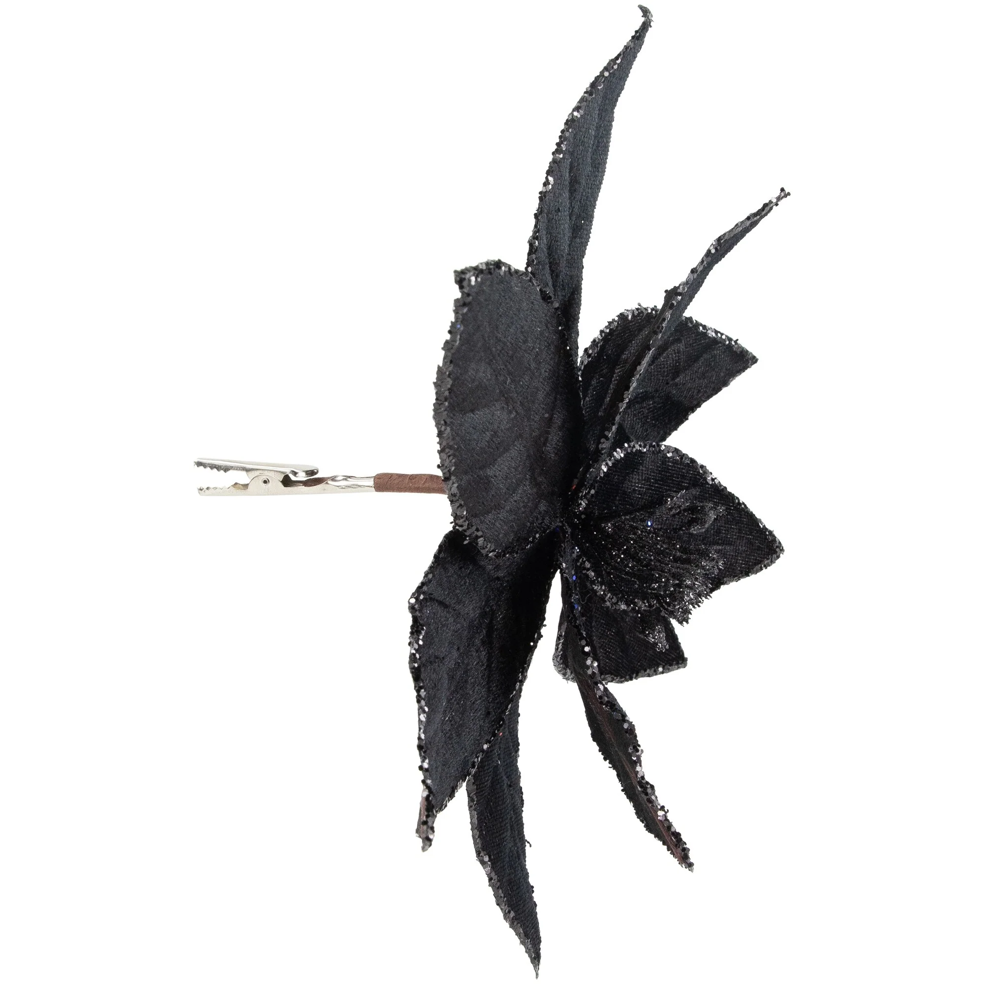 Add some sparkle and glam to your holiday decor with this poinsettia Christmas clip ornament. This beautiful floral piece features glittered petal edges making it a perfect addition to your Christmas tree, wreath, or garland. With a convenient clip at the bottom of the stem, it's easy to attach and secure wherever you choose to use it. Bring some festive cheer to your home this season with this dazzling and eye-catching poinsettia clip ornament.