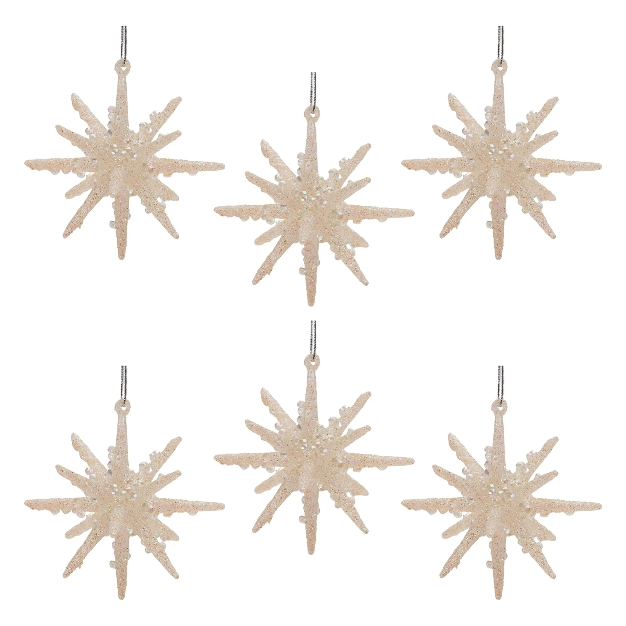 Glittering Star Glass Christmas Ornament - 3" - Beige - 6ct