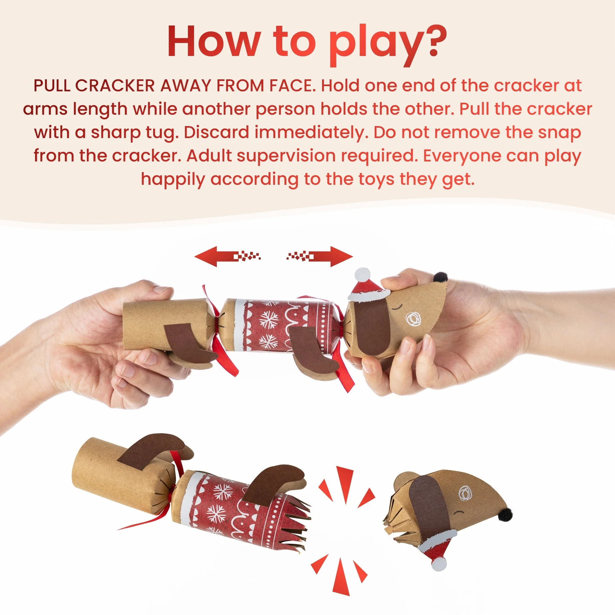 - How to play: pull cracker away from face, strictly follow our use instruction.