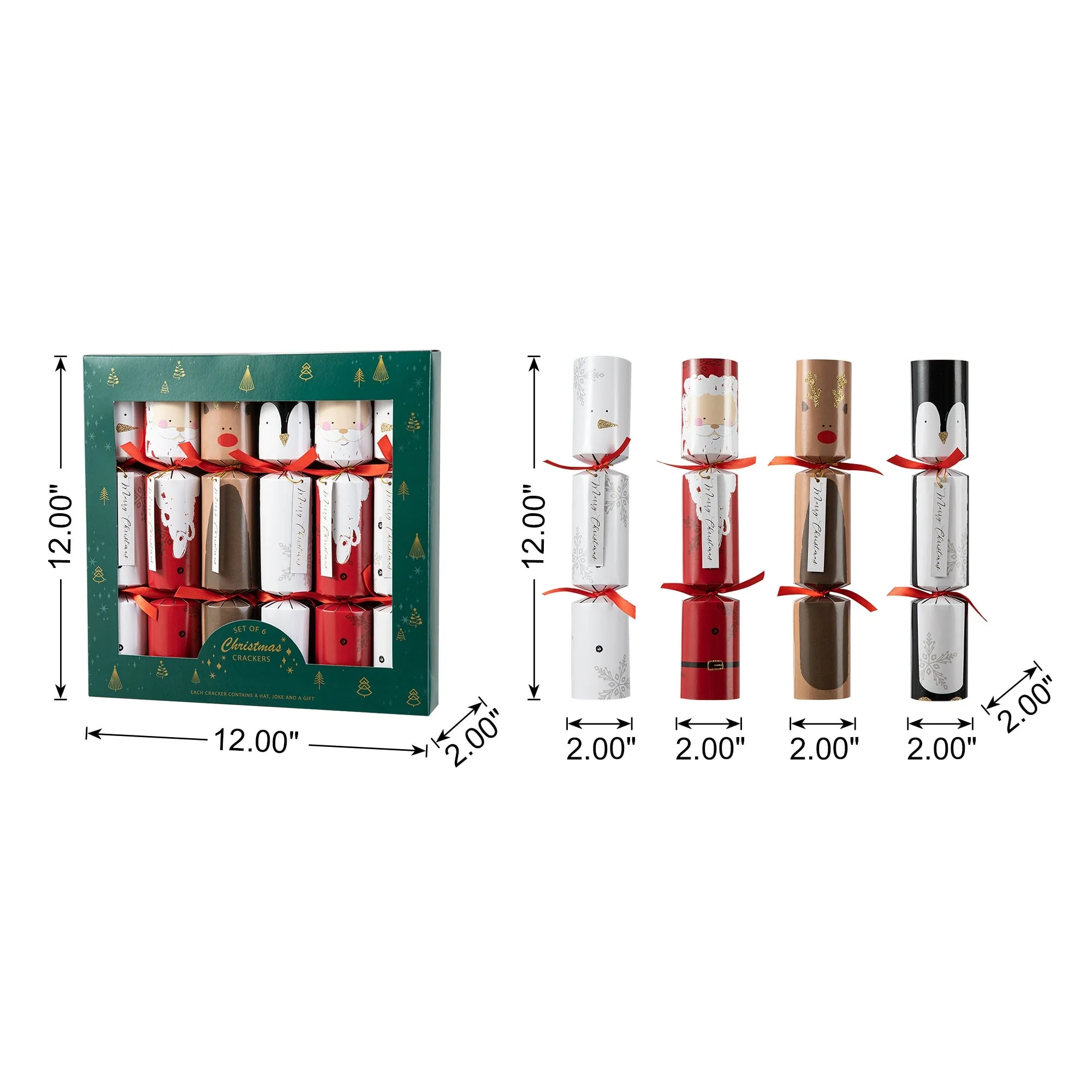 - Package includes: 6pc x Santa, Snowman, Penguin & Reindeer Party Cracker, 8pc x Holy Leaves Party Cracker