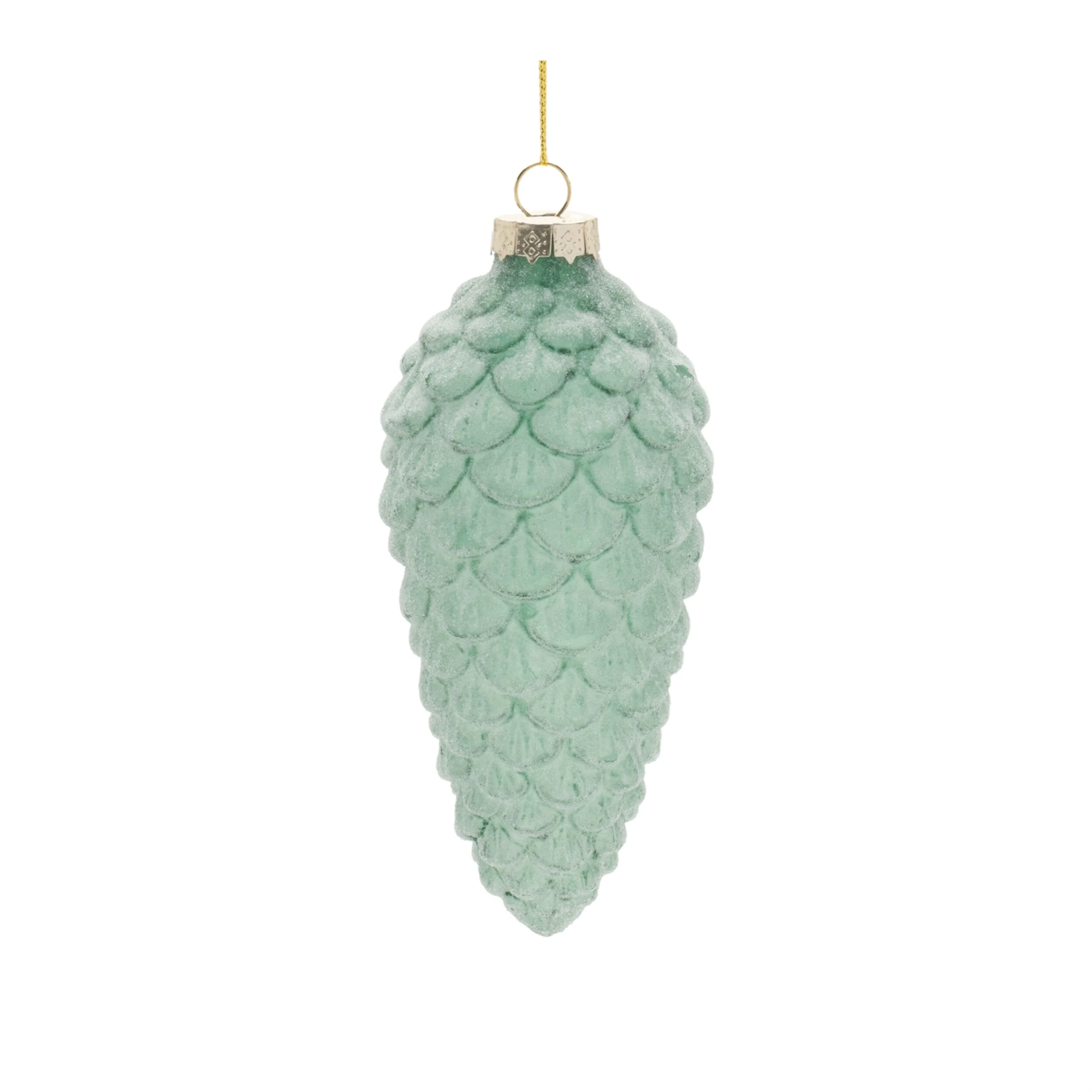 - Frosted glass pinecone ornaments, green glass ornaments, Christmas tree decorations