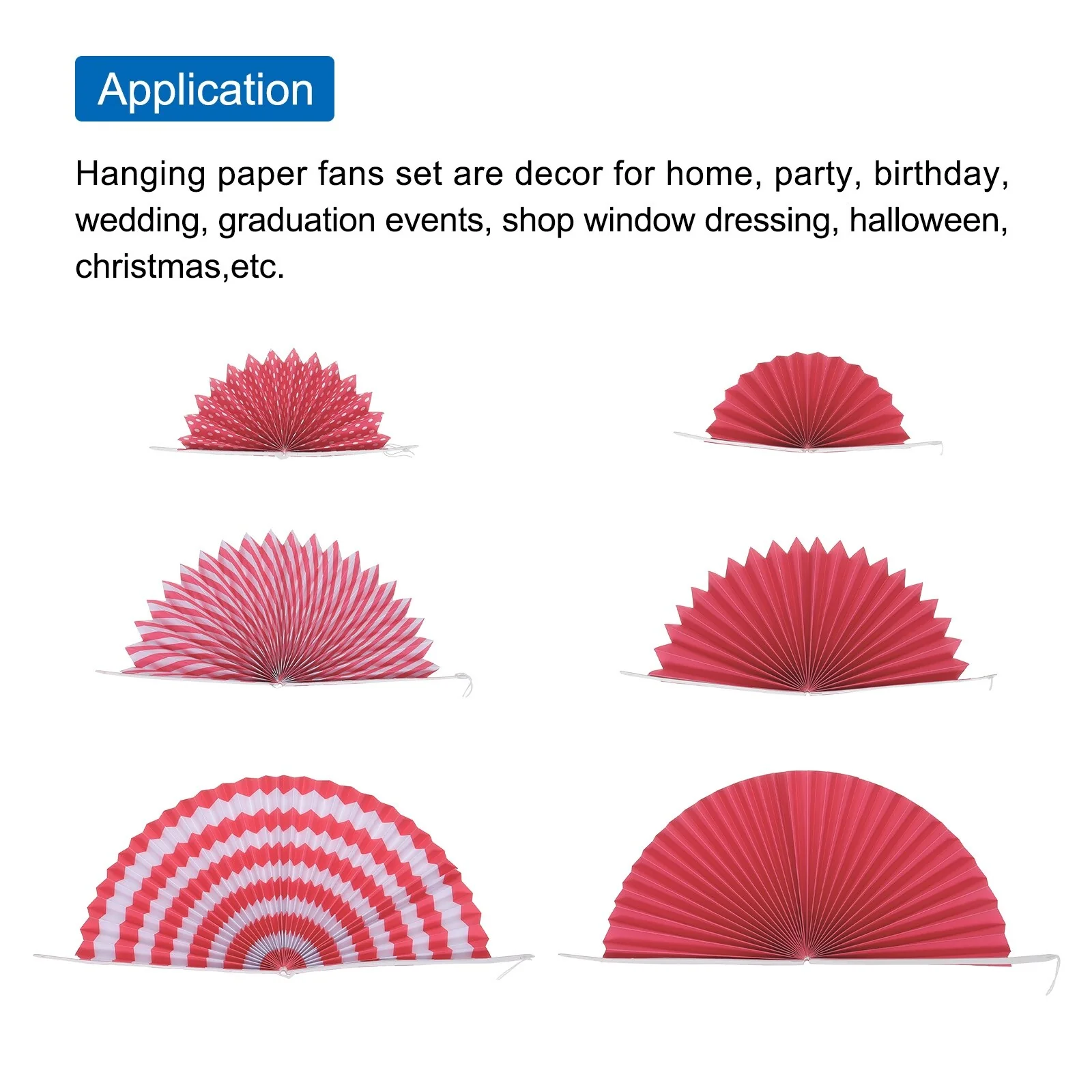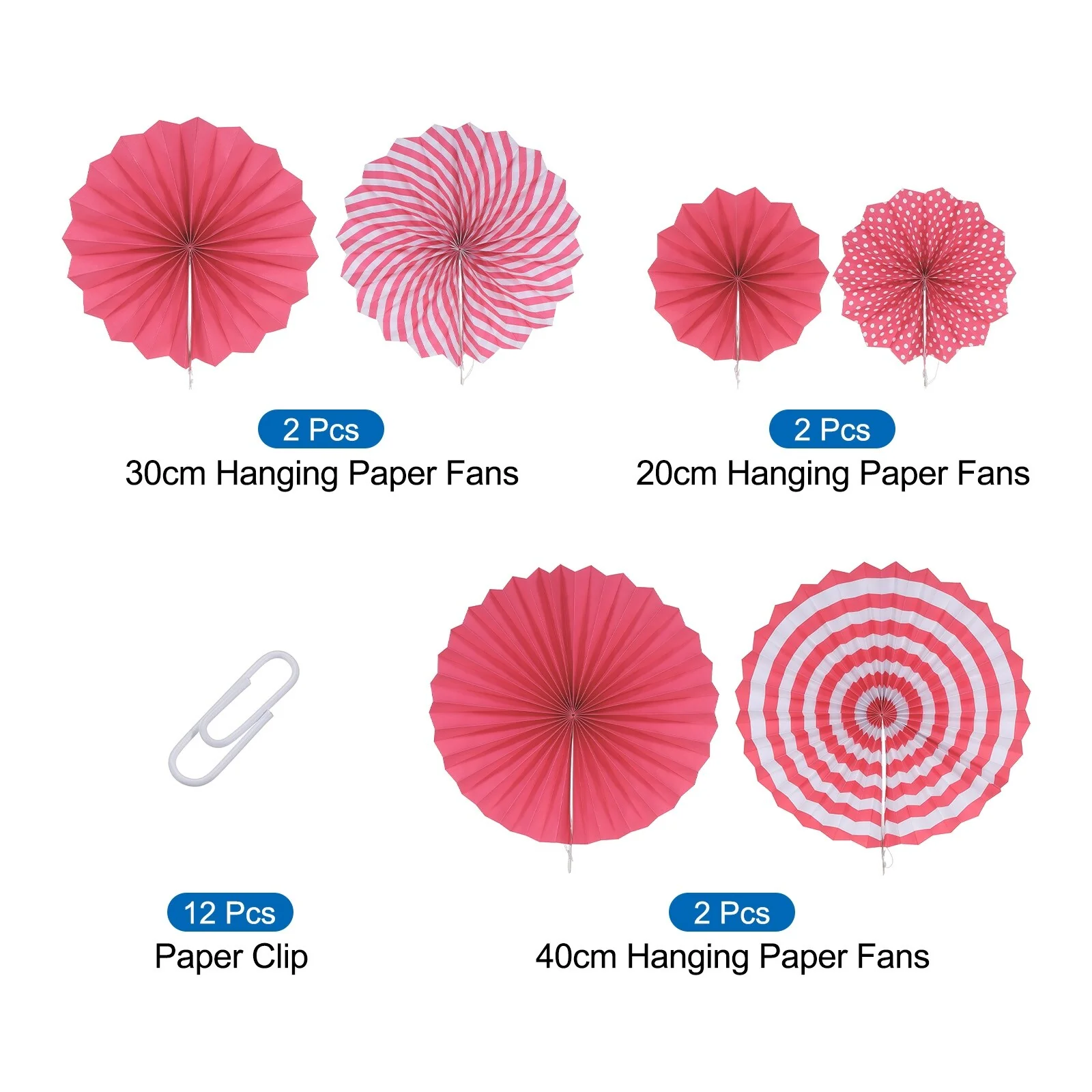Paper fans decoration set ,Size:15.74inchx4pcs+11.81inchx4pcs+7.87inchx4pcs ;Color:Rose Red;Material:Paper;In the package of: 12 x Hanging Paper Fans,12 x paper clip;