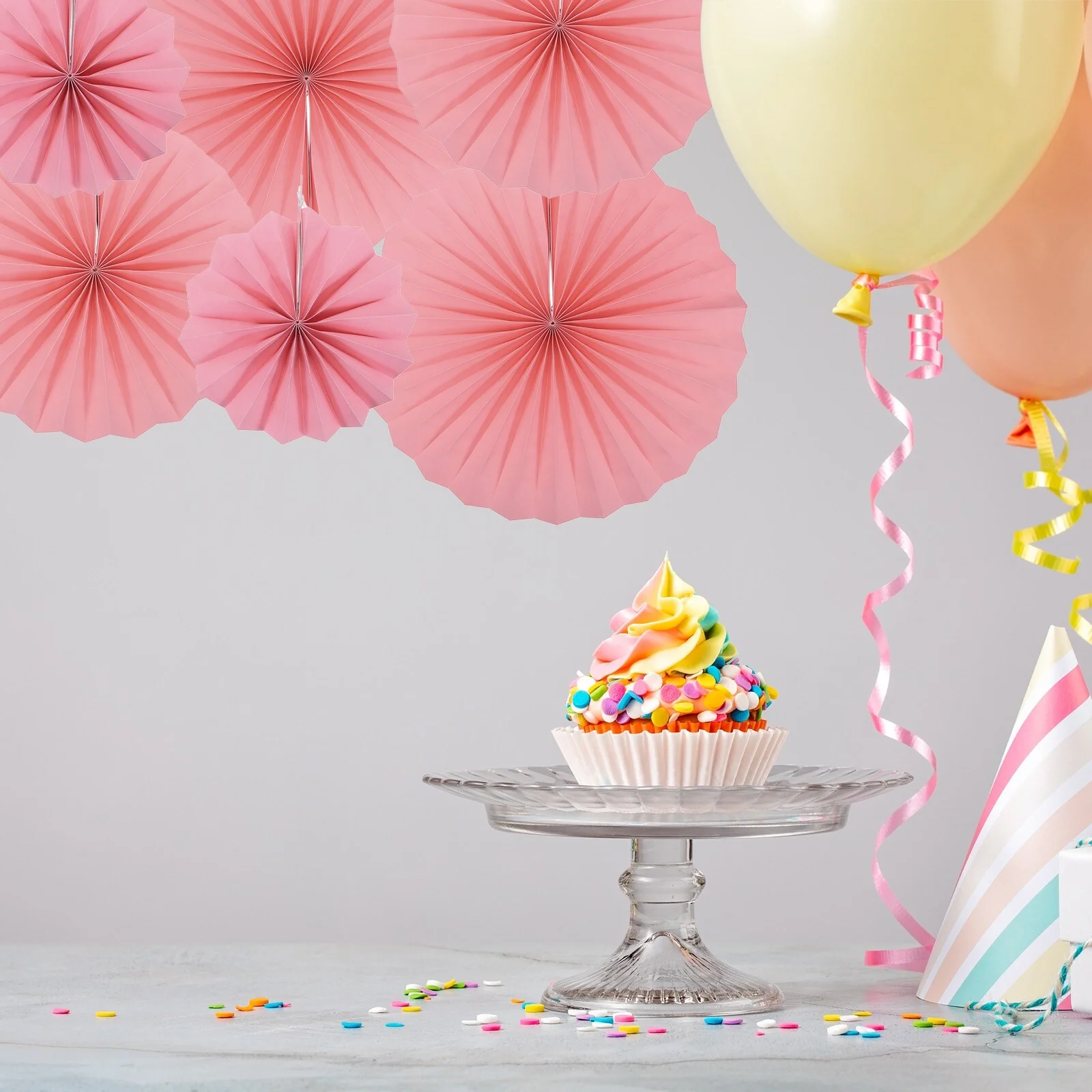 Hanging Paper Fans Party Set 12Pcs Decoration for Home Birthday Wedding Pink