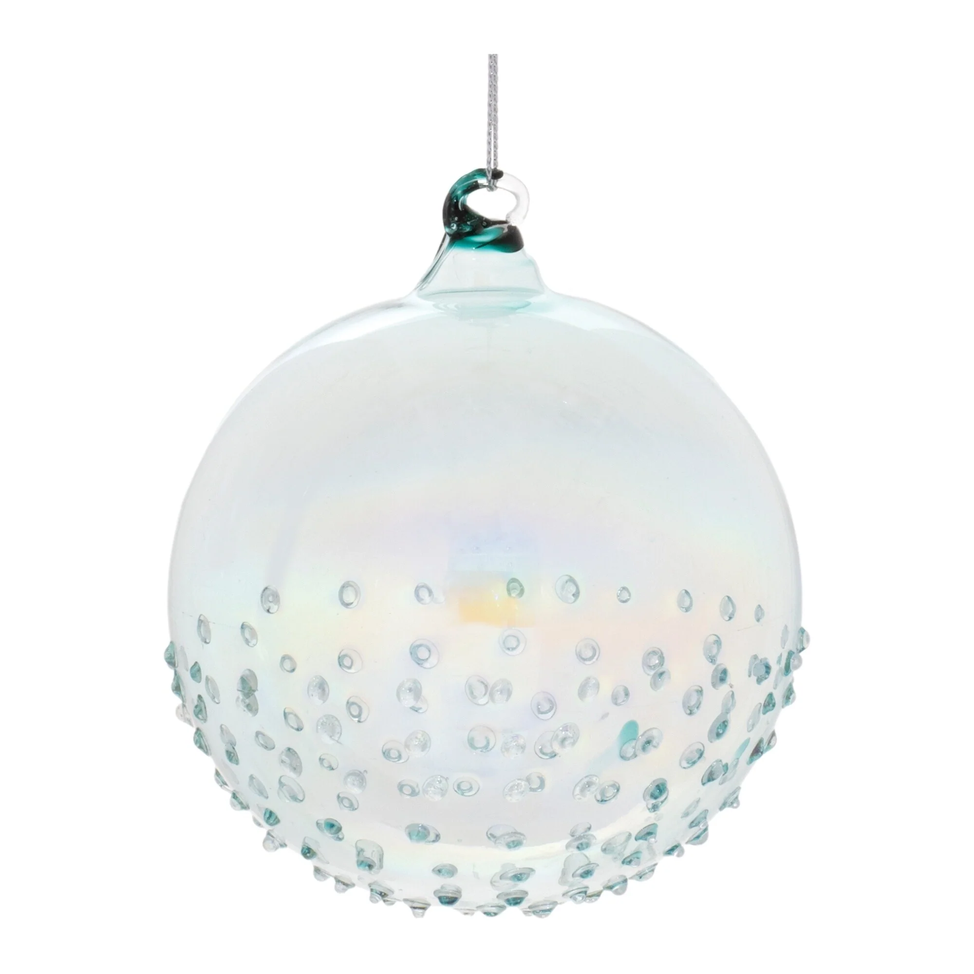 Add a touch of elegance to your holiday décor with these iridescent glass ball ornaments. Featuring wintry light blue tones and a chic iridescent finish, each ornament showcases a classic ball shape with subtle textured accents. The swirled glass ornament cap and delicate string hanger add refined detail, making them perfect for adorning Christmas trees, wreaths, garlands, or seasonal displays with soft shimmer and timeless charm.