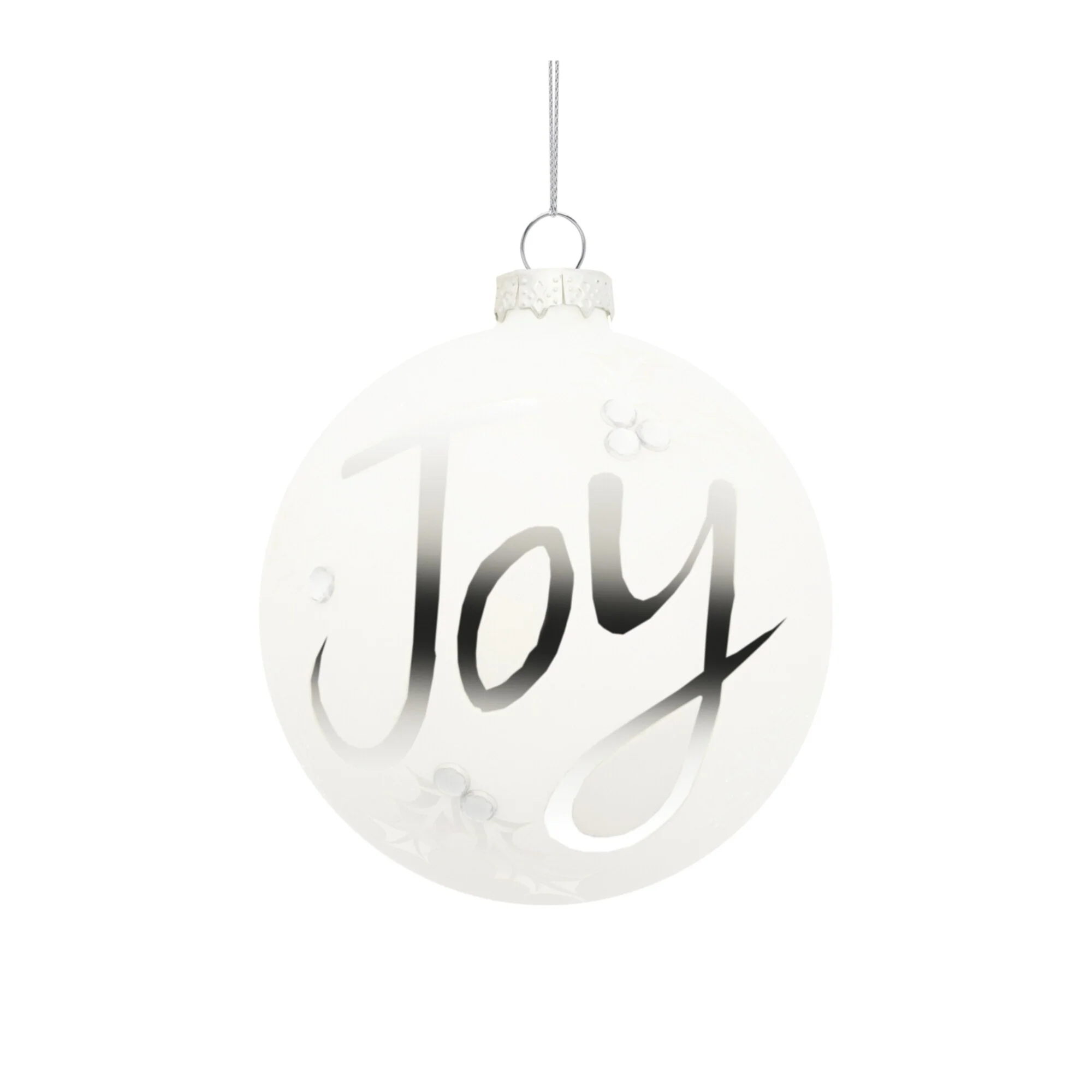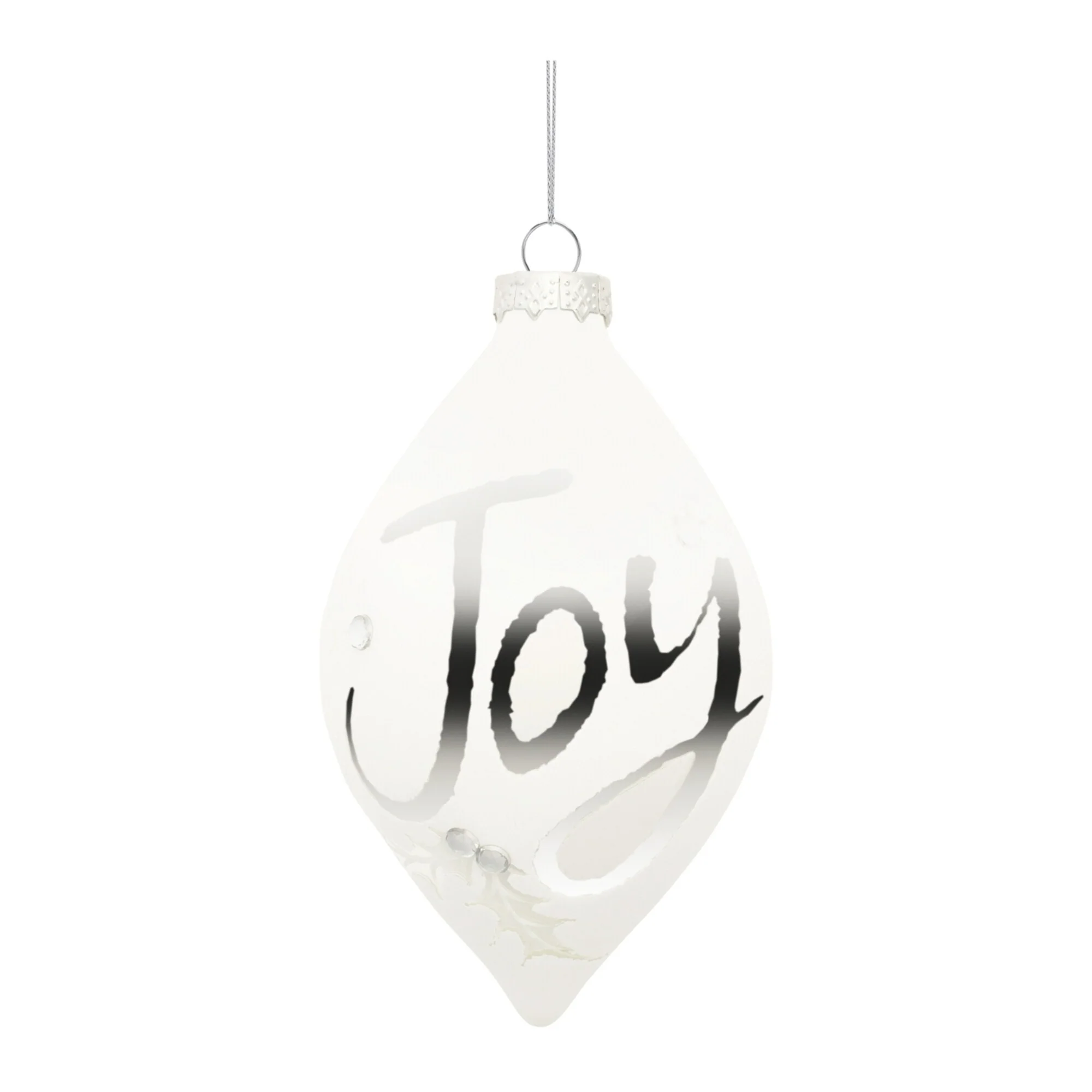 Celebrate the season with elegance using the frosted glass joy ornaments. Designed in wintry white tones with shimmering silver accents, each ornament—available in classic ball and oblong shapes—features the timeless “joy” sentiment. Beaded holly leaves and glittered snowflake details add festive charm and texture, making them a perfect addition to your Christmas tree, garland, or wreath. A beautiful blend of tradition and sparkle for your holiday décor.