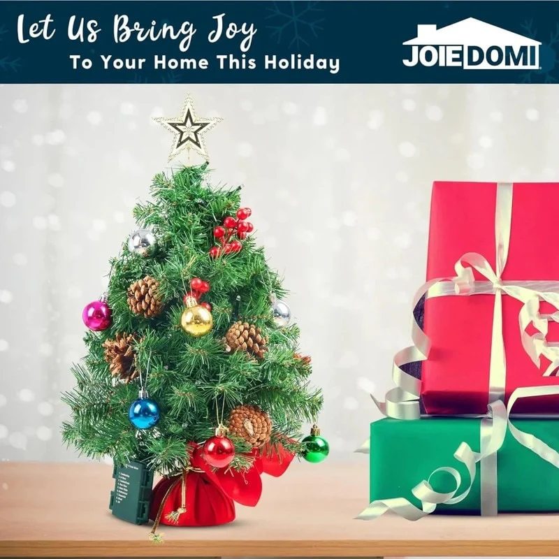 Joiedomi's 5" Prelit Tabletop Christmas Tree comes with color changing LED lights. The warm light strings changes into an array of color to creat your perfect tree. It's the perfect addition for your room and change the color to fill any holiday moment.