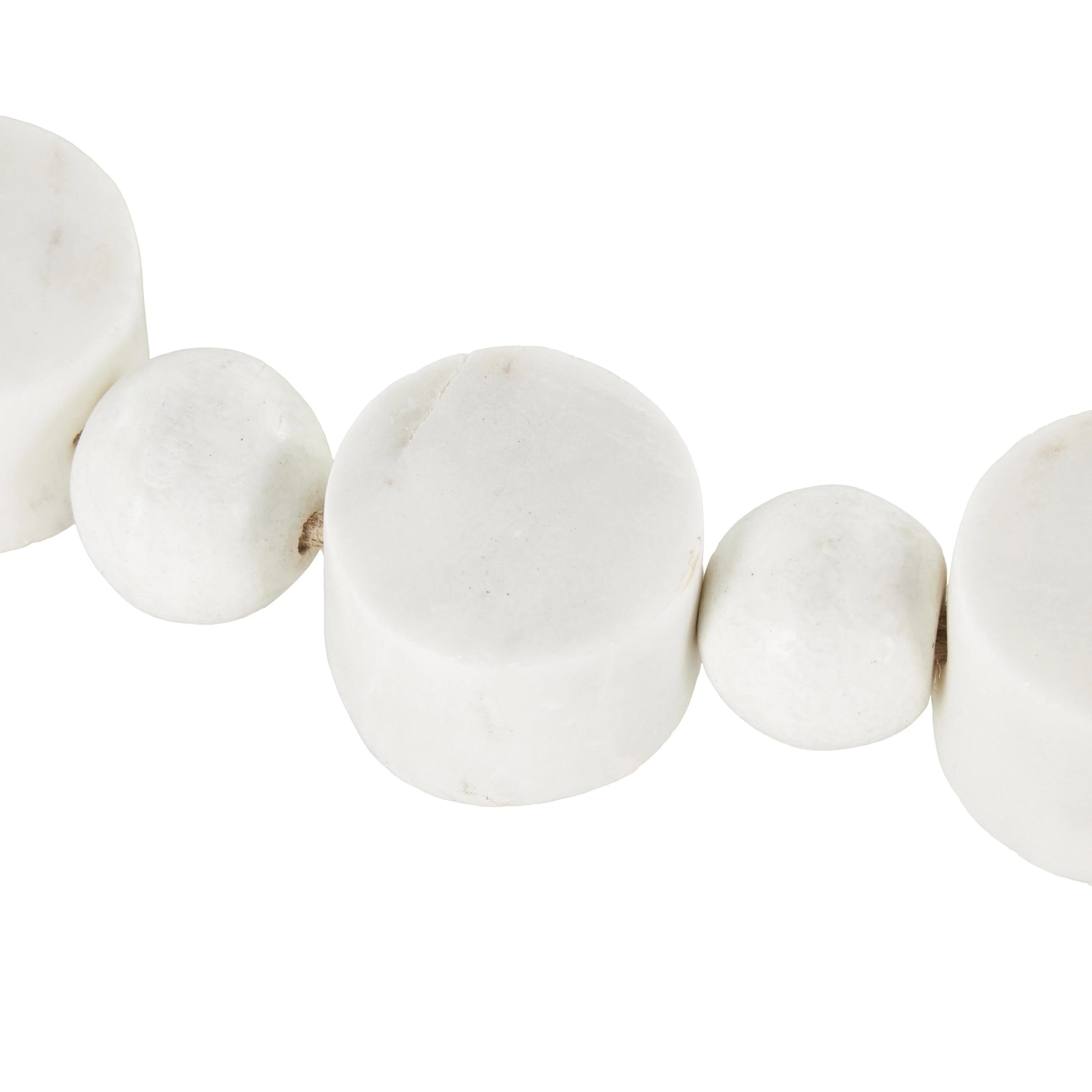 Enhance the elegance of your living room or bedroom with these exquisite white beads featuring a tassel, perfect for adding a touch of traditional charm. This unique piece is shipped in a single carton and makes an ideal gift for any occasion. Crafted by hand, each garland showcases slight variations in shape, size, and color, ensuring no two are exactly alike. Designed exclusively for indoor use, this fully assembled marble garland arrives ready to display. The natural marble material boasts distinctive patterns and hues, enhancing its beauty and uniqueness. Proudly made in India, this traditional-style decor piece features large white beads with a tassel that brings timeless appeal to any space.