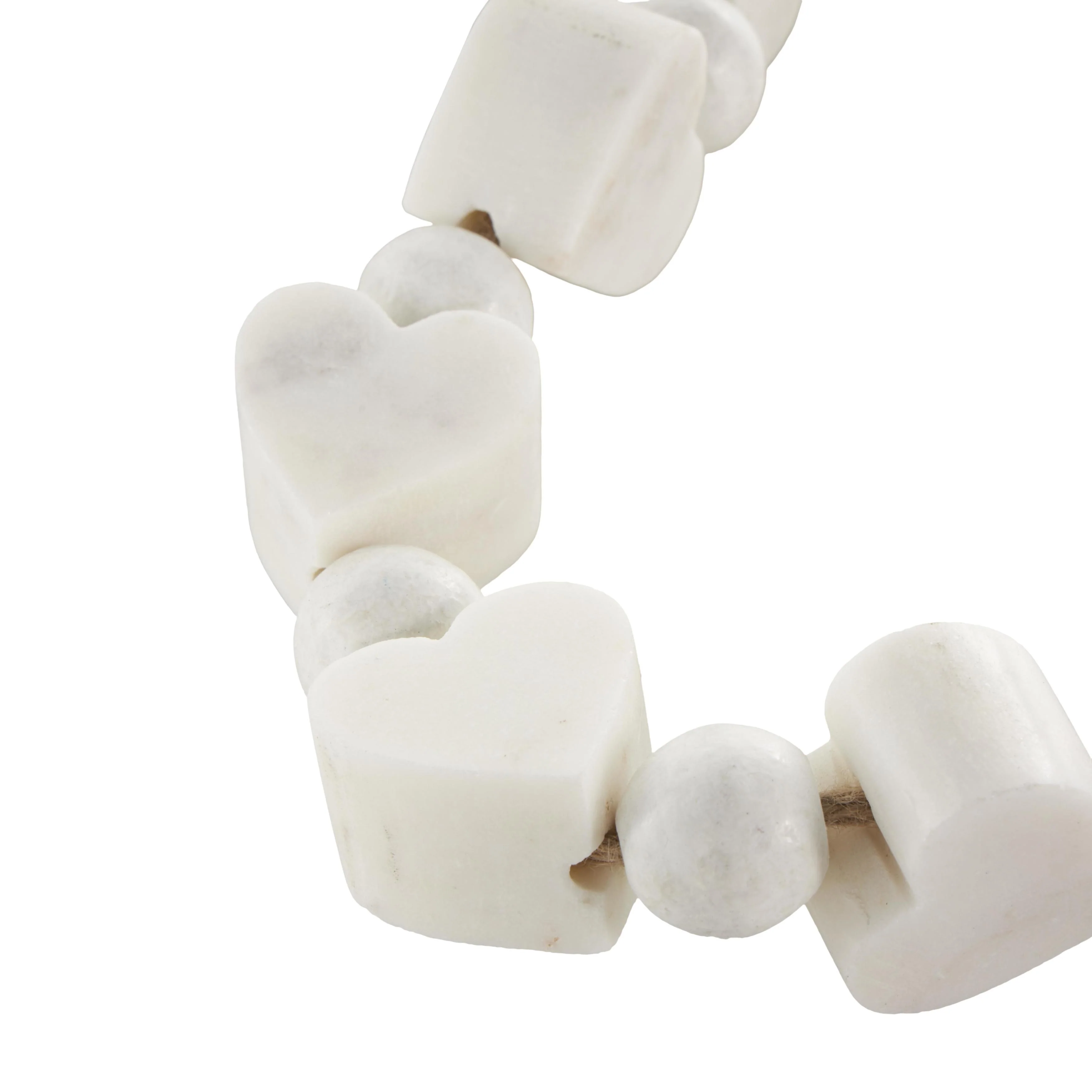 Enhance your living room or bedroom with this exquisite heart-shaped bead garland, complete with a tassel, to infuse traditional elegance into your decor. This unique piece is carefully packaged and delivered in a single carton. The marble bead garland, adorned with a tassel, makes an exceptional gift for any special occasion. Each item is handcrafted, ensuring that no two are identical; expect slight variations in shape, size, and color that add to its distinctive charm. Designed exclusively for indoor use, this item arrives fully assembled for your convenience. Crafted from natural marble, each piece boasts unique color variations and patterns that enhance its beauty and allure. Proudly made in India, this singular white bead garland with tassel embodies traditional style at its finest.