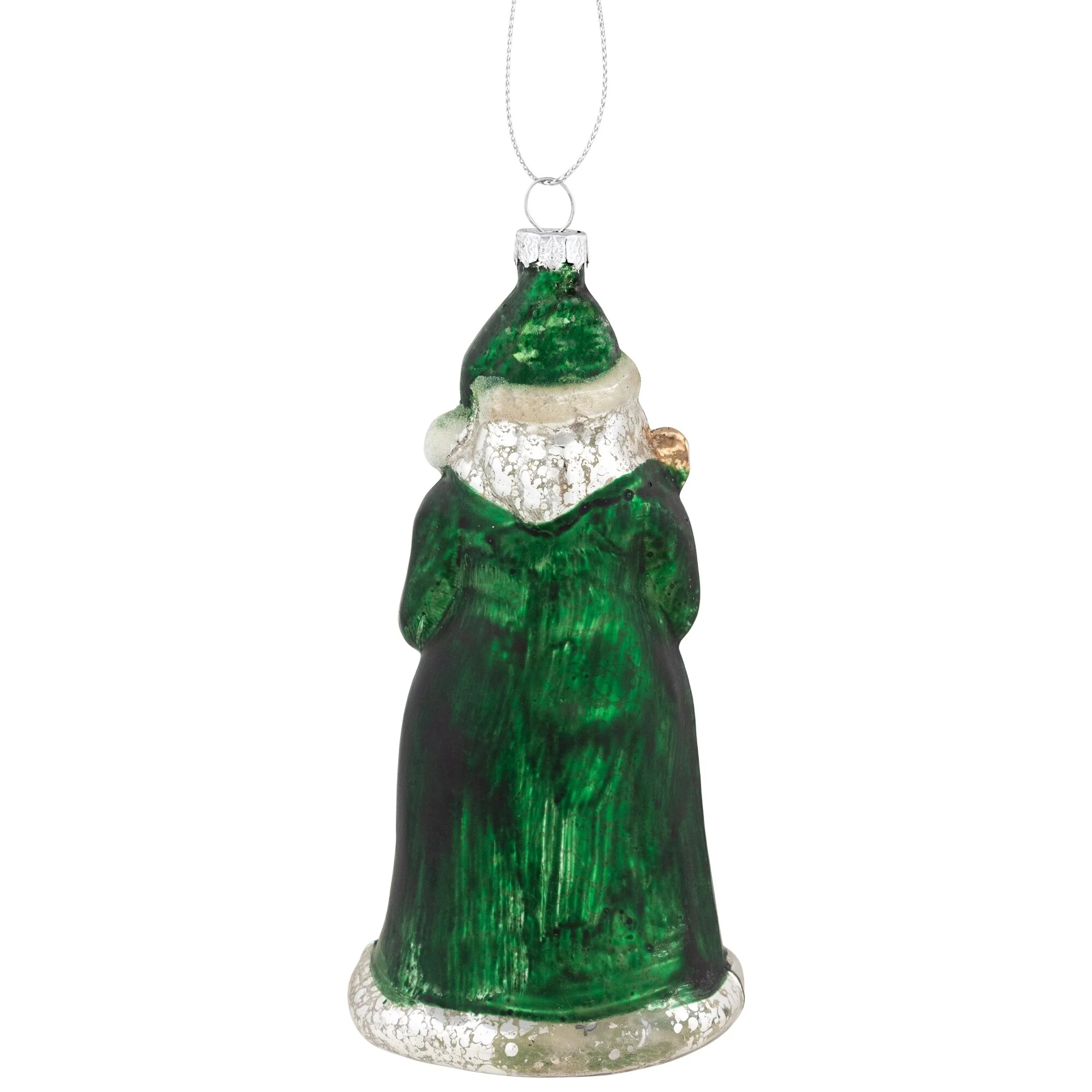 Add a touch of Nordic charm to your holiday decor with our green and silver Santa Christmas ornament. This exquisitely crafted ornament showcases Santa Claus dressed in a vibrant green jacket and hat, adorned with elegant silver trim. Its meticulous design beautifully mimics the allure of mercury glass, featuring a harmonious blend of matte and shiny finishes. Elevate your festive ambiance with this delightful ornament, combining traditional holiday spirit with a touch of contemporary sophistication.
