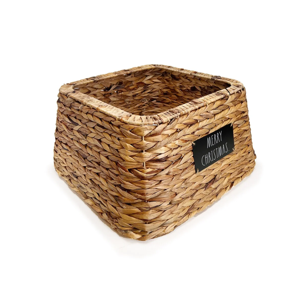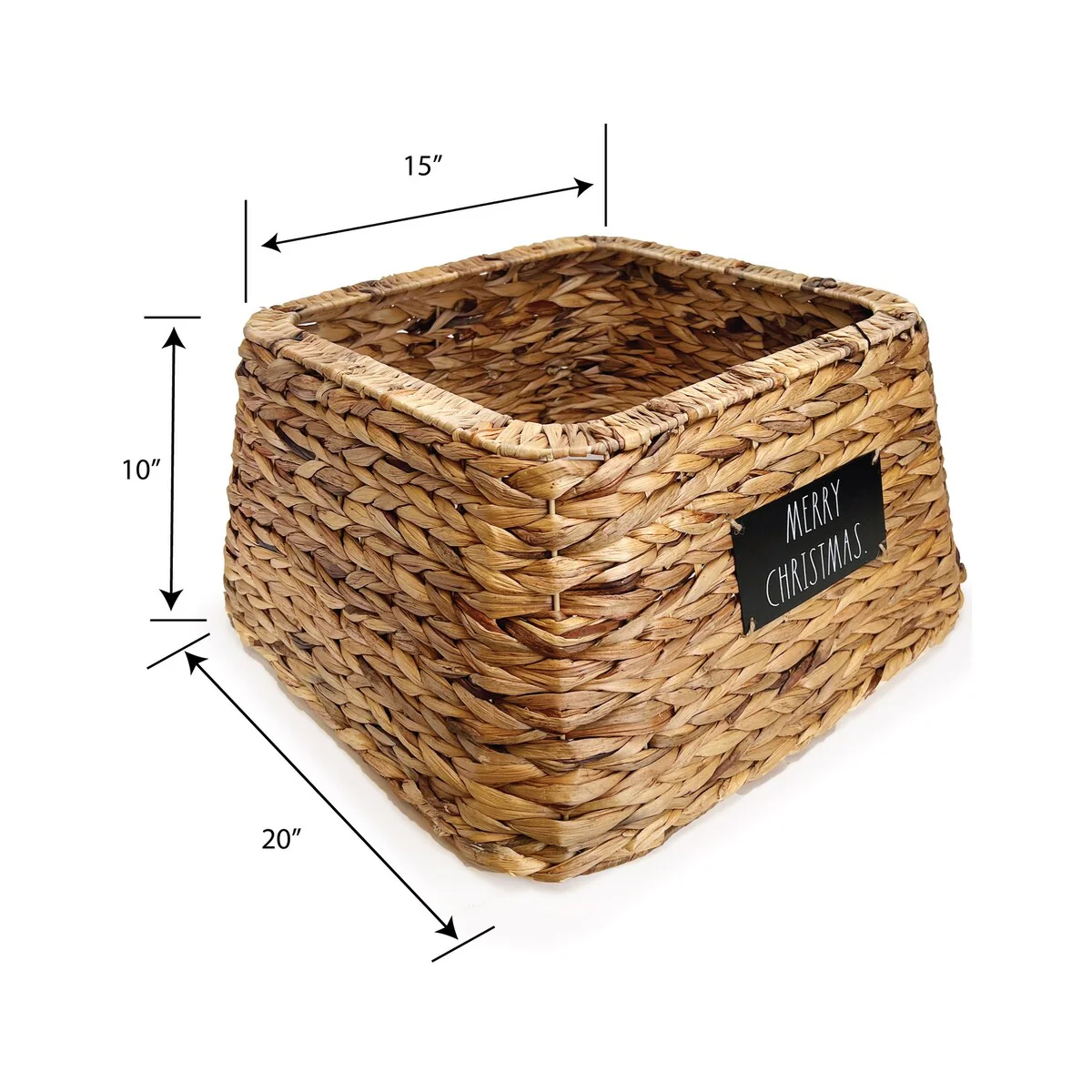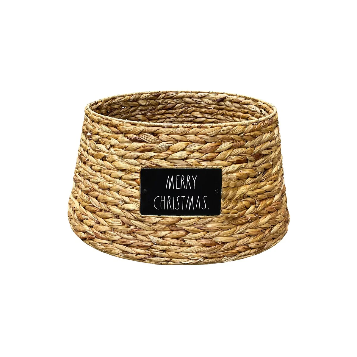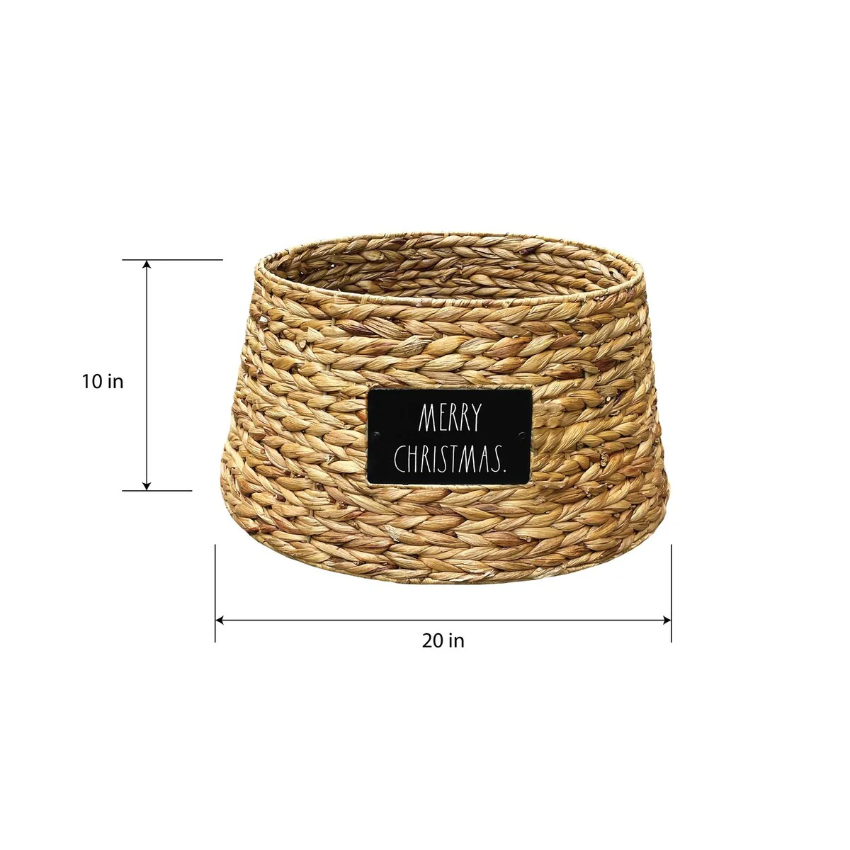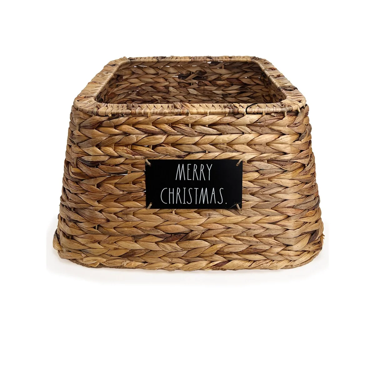Elevate the look of your artificial Christmas tree with the rustic charm of Rae Dunn's Christmas Tree Collars. This natural woven cover hides unsightly metal stands and visible tripod bases, giving your tree a closer-to-lifelike appearance that is natural at first glance. The sturdy, high-walled design prevents pets from drinking water from the base or chewing on the trunk, and stops fur, hair, feathers, dust, and dander from getting onto your tree. The reusable holiday decor's signature font adds a personal touch to your Christmas decorations year after year.