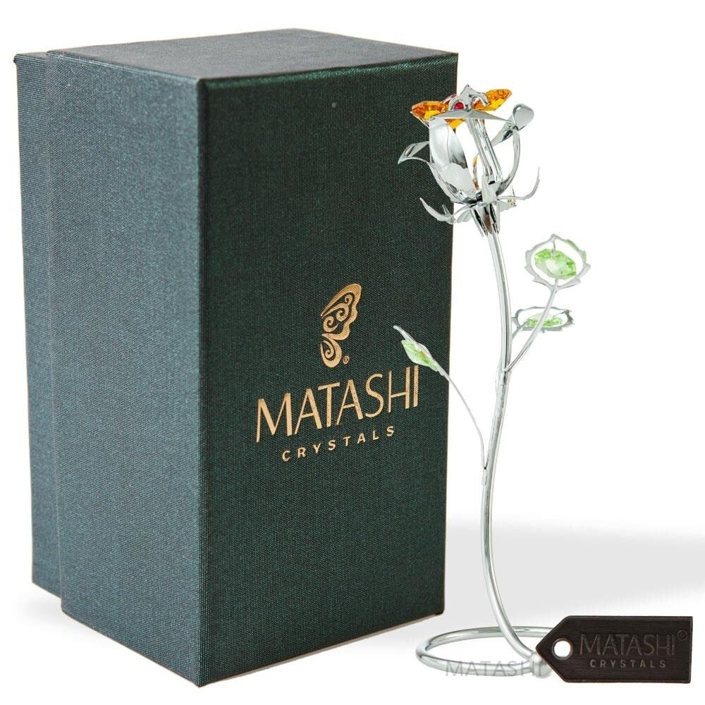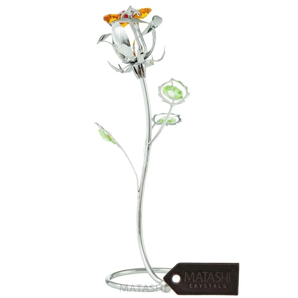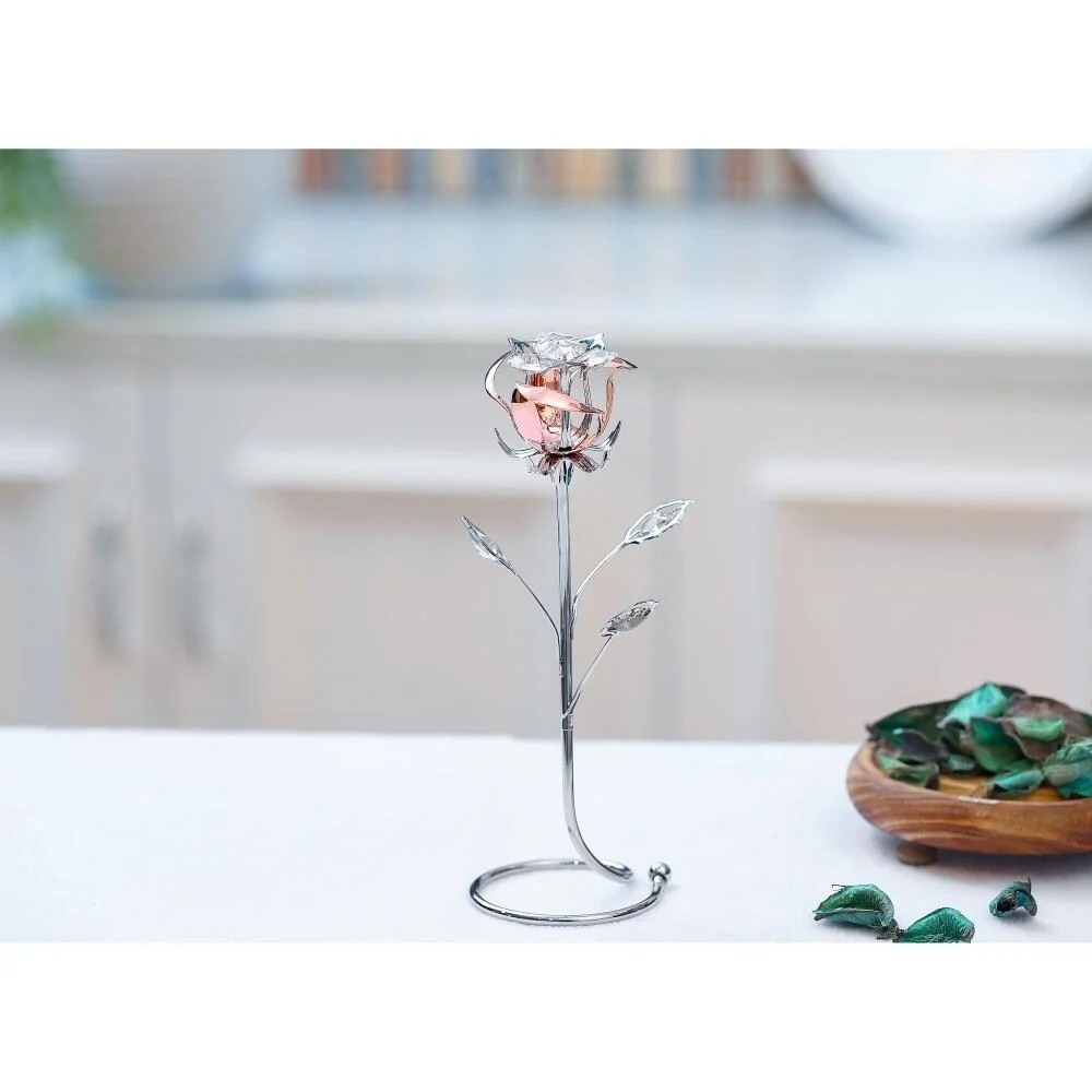 This unique metal/chrome plated flower with rose gold plating makes a thoughtful and beautiful addition to your home, office or desk. The top bulb of each decorative flower is fitted with gorgeous Matashi clear crystals, properly highlighting the natural beauty of the gold.