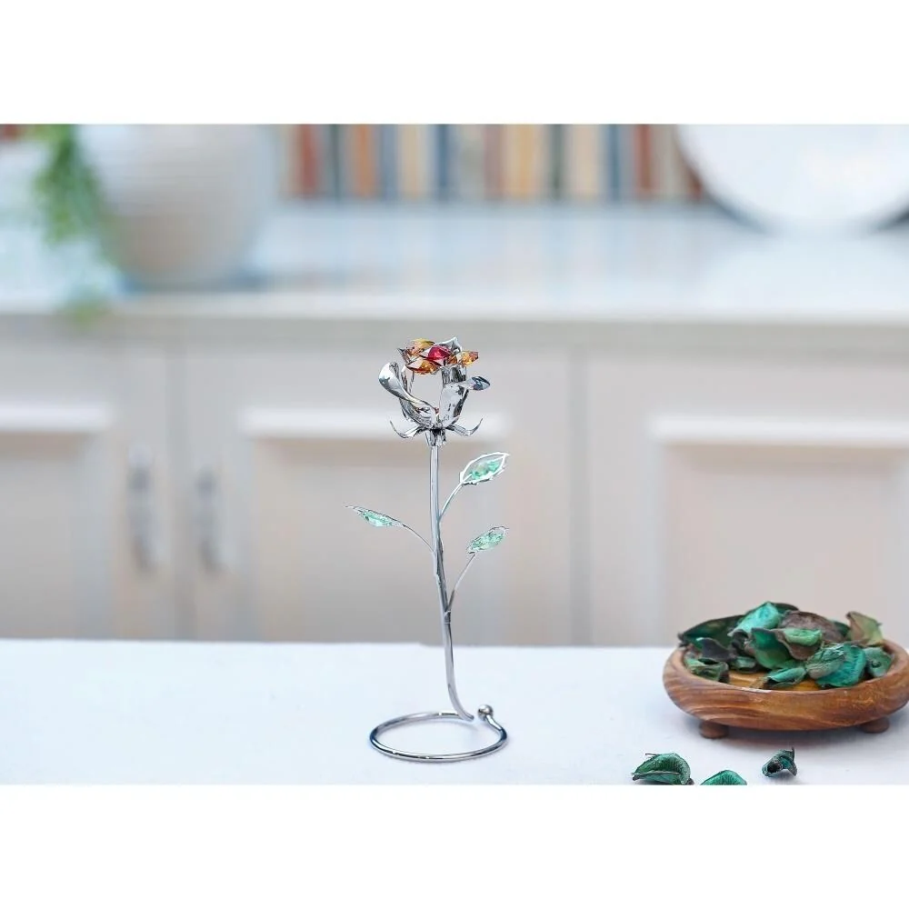 Rose Flower Tabletop Ornament w/Clear Matashi Crystals