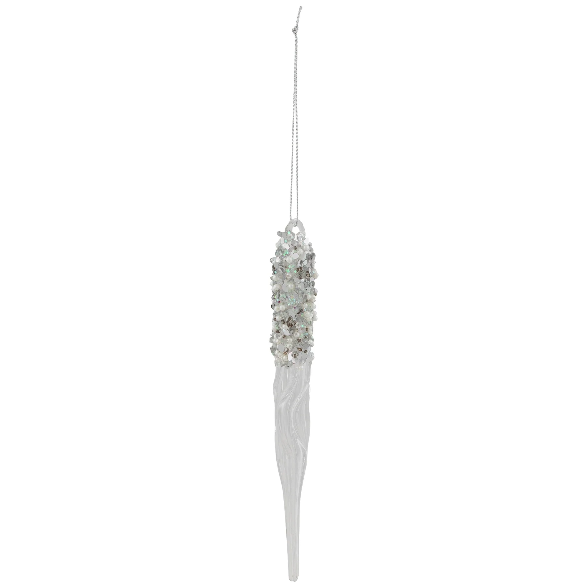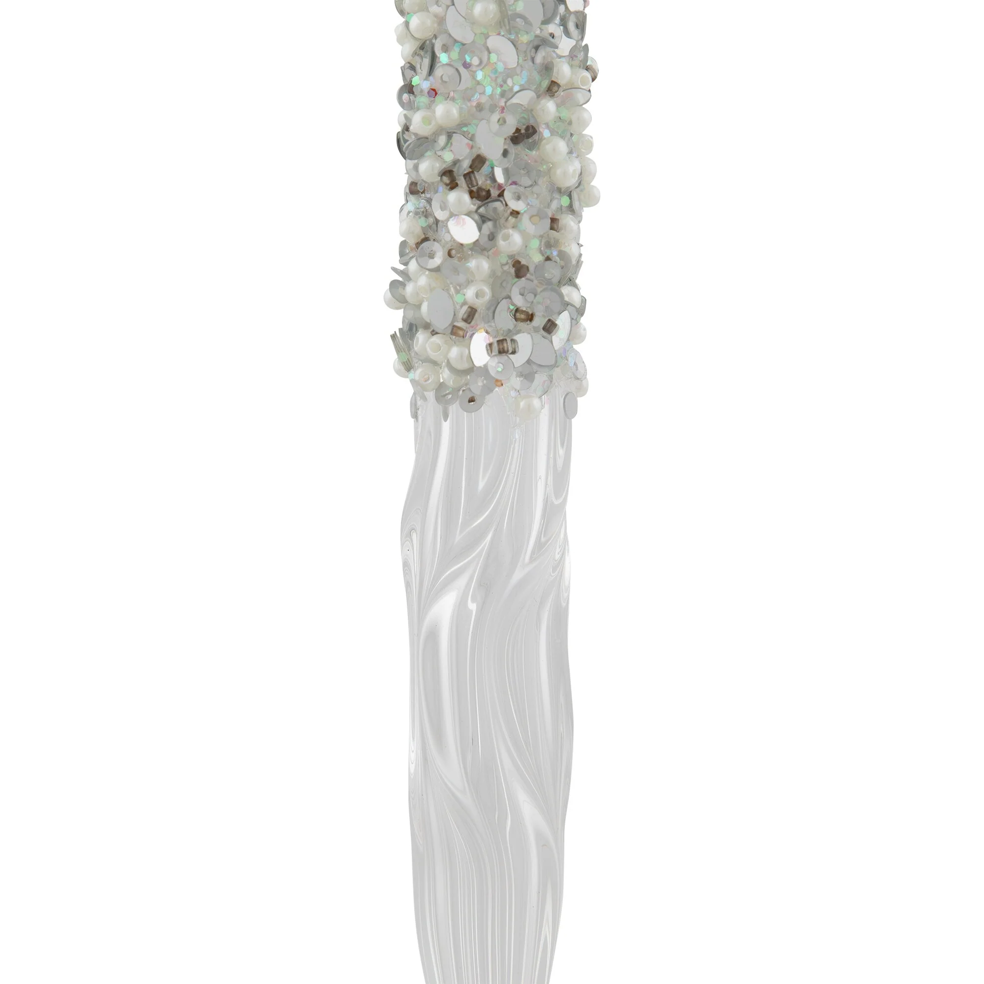 Sequined and Beaded Icicle Glass Christmas Ornament - 9" - Clear