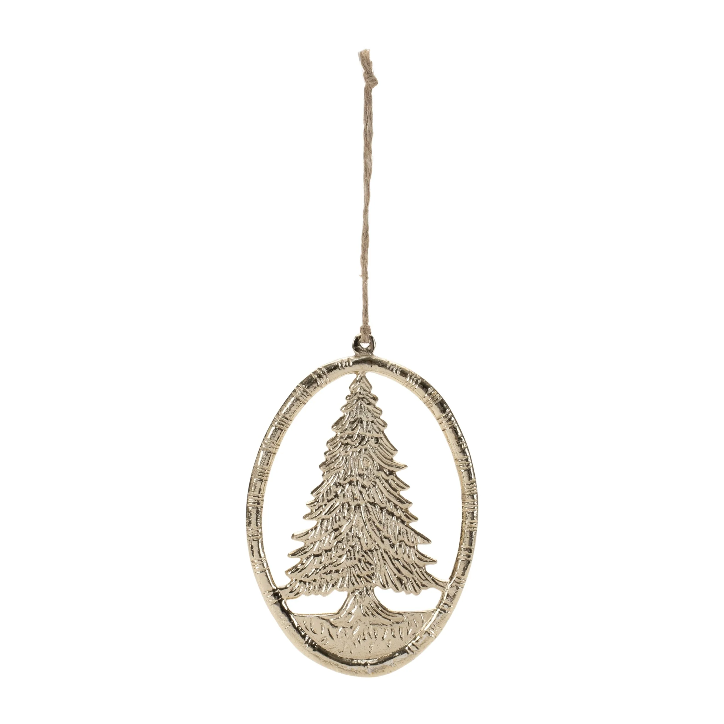 Bring rustic stylishness to your holiday decor with the Oval Tree Ornament (Set of 12). Made from grey-toned aluminum, each ornament features an intricate etched pine tree design within a stylish oval shape, offering a chic metallic finish. The design’s delicate detailing evokes a sense of woodland charm, while the natural jute string hanger makes hanging simple and adds an earthy touch. Whether displayed on your Christmas tree or gifted to loved ones, this ornament set brings a unique, nature-inspired touch to your seasonal celebrations.