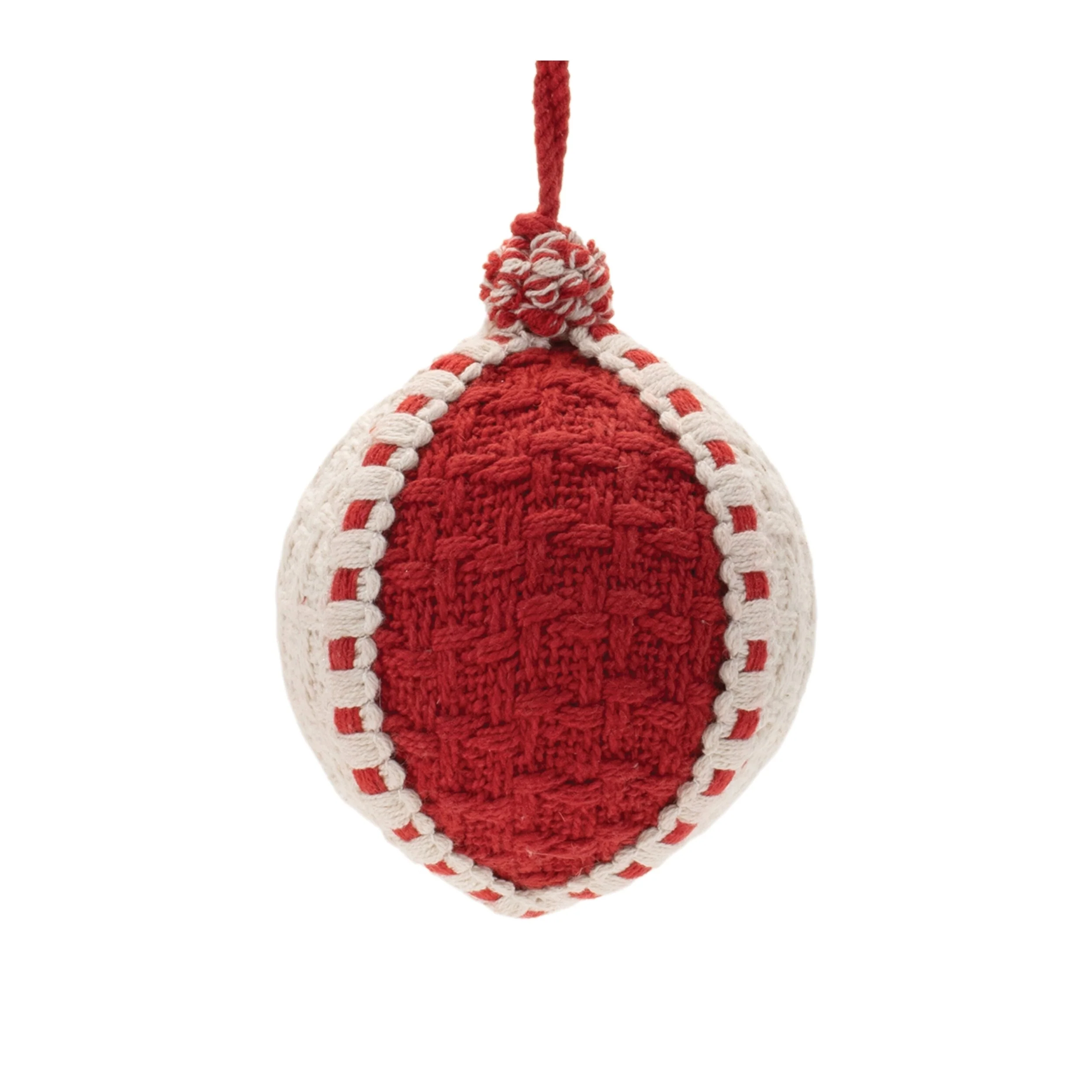 Add a warm and inviting touch to your holiday decorations with this set of four woven ball ornaments in cozy beige and festive red tones. Crafted from durable plastic and soft cotton fabric, each ornament showcases a textured, sweater-inspired design that brings a comforting, rustic charm to Christmas trees, wreaths, or garlands. Featuring two assorted sizes with rope string hangers for easy display, these lightweight ornaments measure 3.5” to 4.5” in length and add seasonal warmth and texture to any indoor space. Perfect for enhancing holiday décor or gifting to friends and family who appreciate cozy, classic seasonal accents.