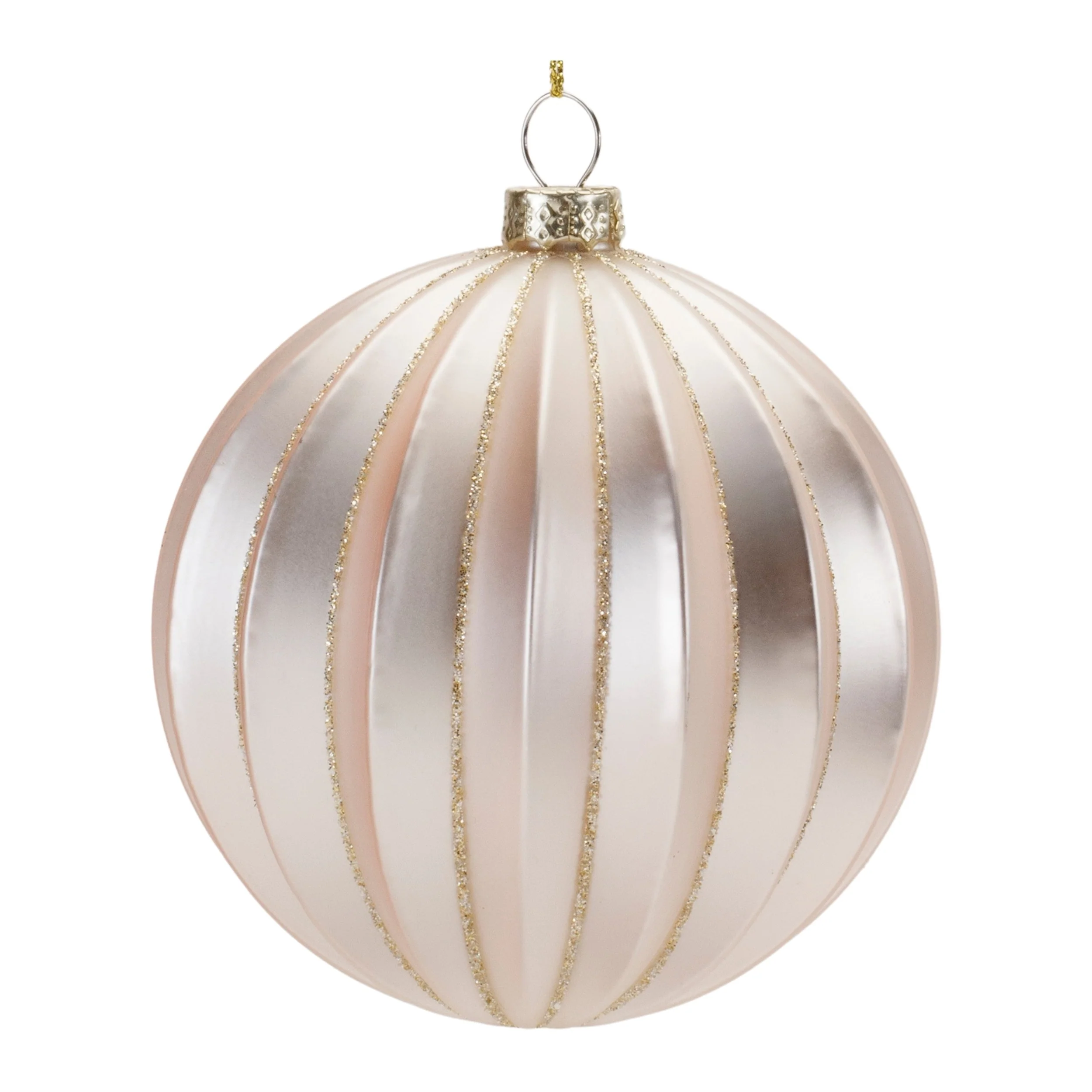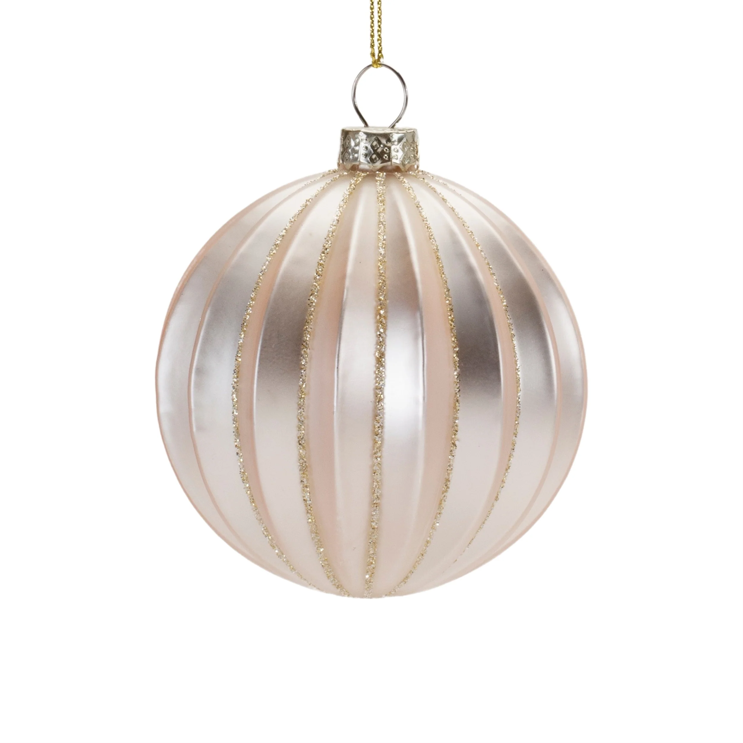 Elevate your holiday decor with this exquisite set of Glass Ball Ornaments (Set of 6). Designed to bring a festive touch to your Christmas tree, each ornament is meticulously crafted from glass. Featuring two assorted sizes (3” and 4”), the ribbed texture combined with shimmering gold tones and glitter accents creates a dazzling effect. The delicate string hangers make them easy to hang and display. Whether you're decorating for the season or searching for a thoughtful holiday gift, these timeless ornaments will bring warmth and elegance to any home. Perfect for indoor use, these ornaments will surely add a sparkling charm to your Christmas celebrations for years to come.