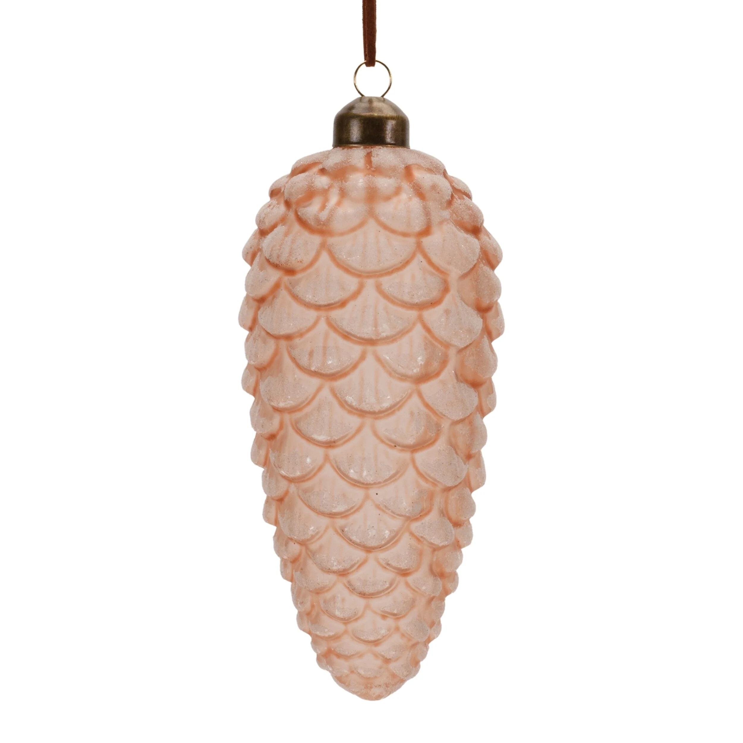 Bring nature-inspired charm to your holiday décor with this 6-piece Pine Cone Ornament Set, crafted in two assorted sizes. Made from glass with a frosted finish, these amber and pink ornaments create a soft woodland look ideal for Christmas trees, wreaths, or garlands. The intricate pinecone shape adds texture and seasonal style, while the attached leather-look hanging cord offers easy placement. Perfect for festive decorating or as a thoughtful seasonal gift, this set adds a cozy touch to any indoor space.