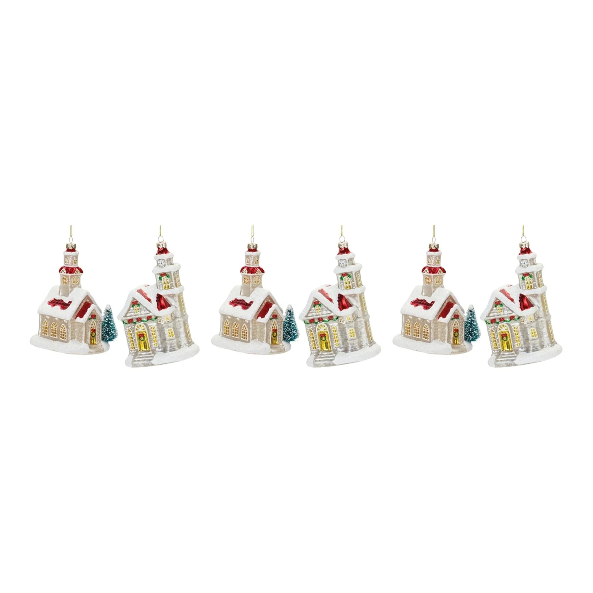 Infuse your Christmas tree with sacred beauty using this exquisite set of glittered church ornaments. The timeless church design and shimmering snowy glitter accents create a divine ambiance, perfect for honoring the true spirit of the season. Crafted from high-quality materials and delicately suspended by gold strings, these ornaments are built to last, spreading their heavenly charm for many joyful holidays to come. Whether displayed in your home or given as a thoughtful gift, these ornaments will inspire smiles and warmth throughout the festive season.