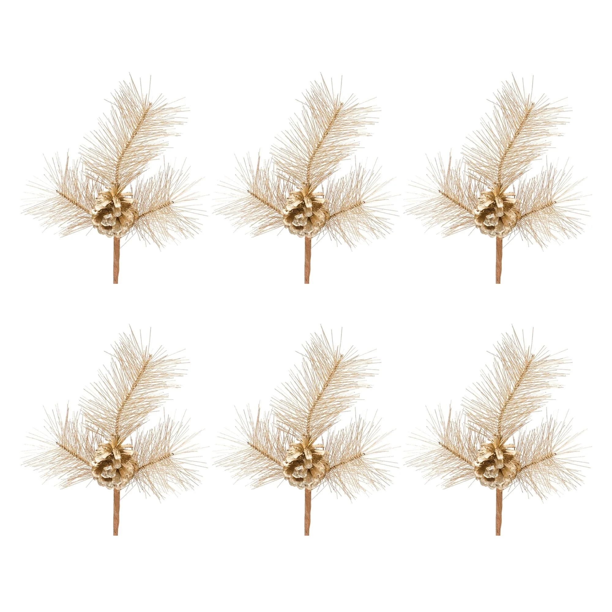Enhance the beauty of your holiday decorations with these exquisite picks. These are perfect for adding a natural touch to your Christmas tree, holiday porch pot, or tabletop vase arrangement. The wintry gold tones combined with the elegant ornament ball accent create a truly stunning display. Complete your holiday decor with this enchanting gold pine picks and create a captivating atmosphere in your home.