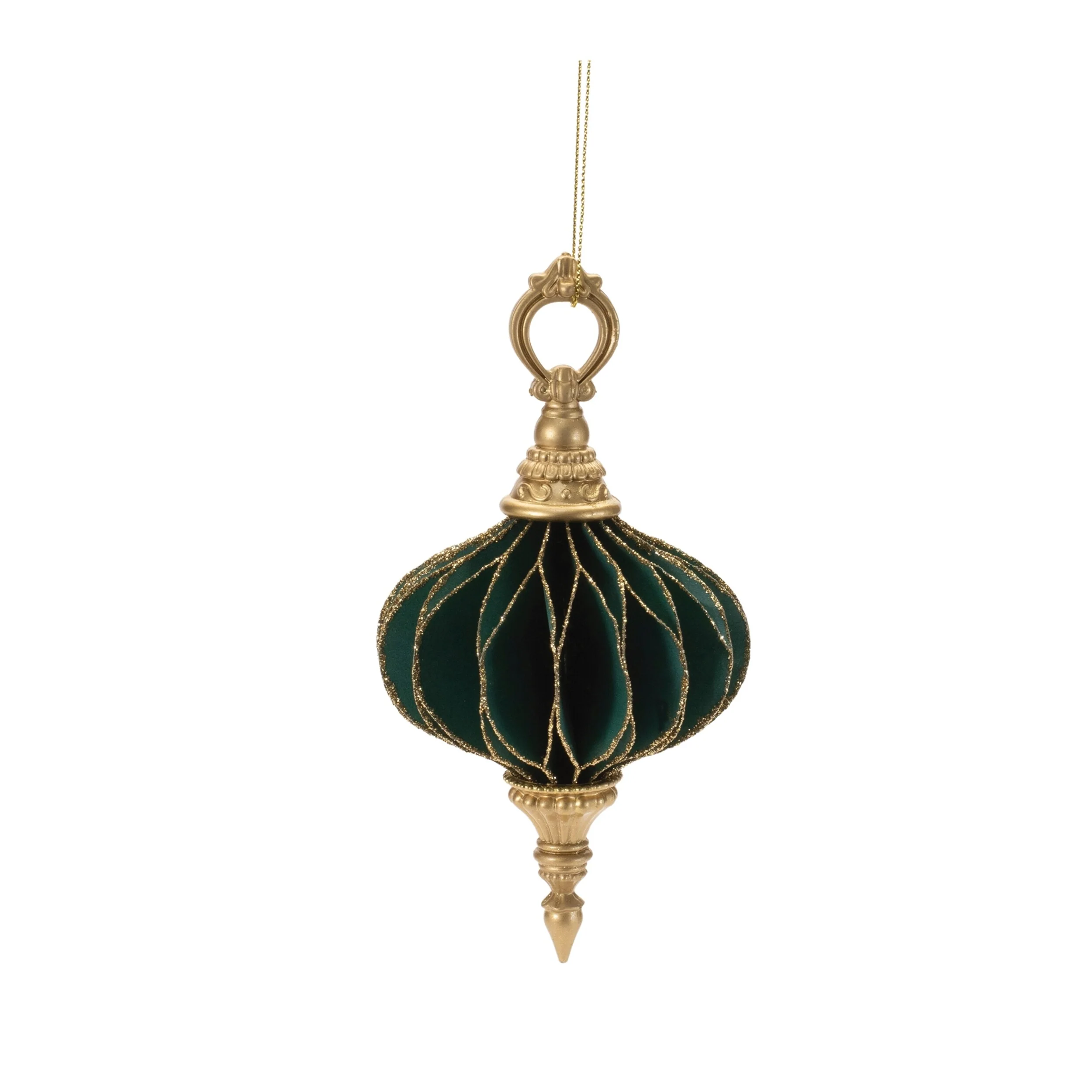 Enhance your seasonal decor with this set of 6 folded paper and plastic ornaments, each beautifully crafted in classic ball and onion shapes. These ornaments feature layered textures and come in a mix of 6", 7", and 7.25" sizes, adding visual interest and depth to your holiday display. Finished in festive green and gold with a shimmering glitter accent, they bring a refined touch to Christmas trees, garlands, or tabletop arrangements. Each ornament includes a string for easy hanging and showcases a decorative top cap for added charm. Ideal for indoor holiday decorating or as a stylish gift set.