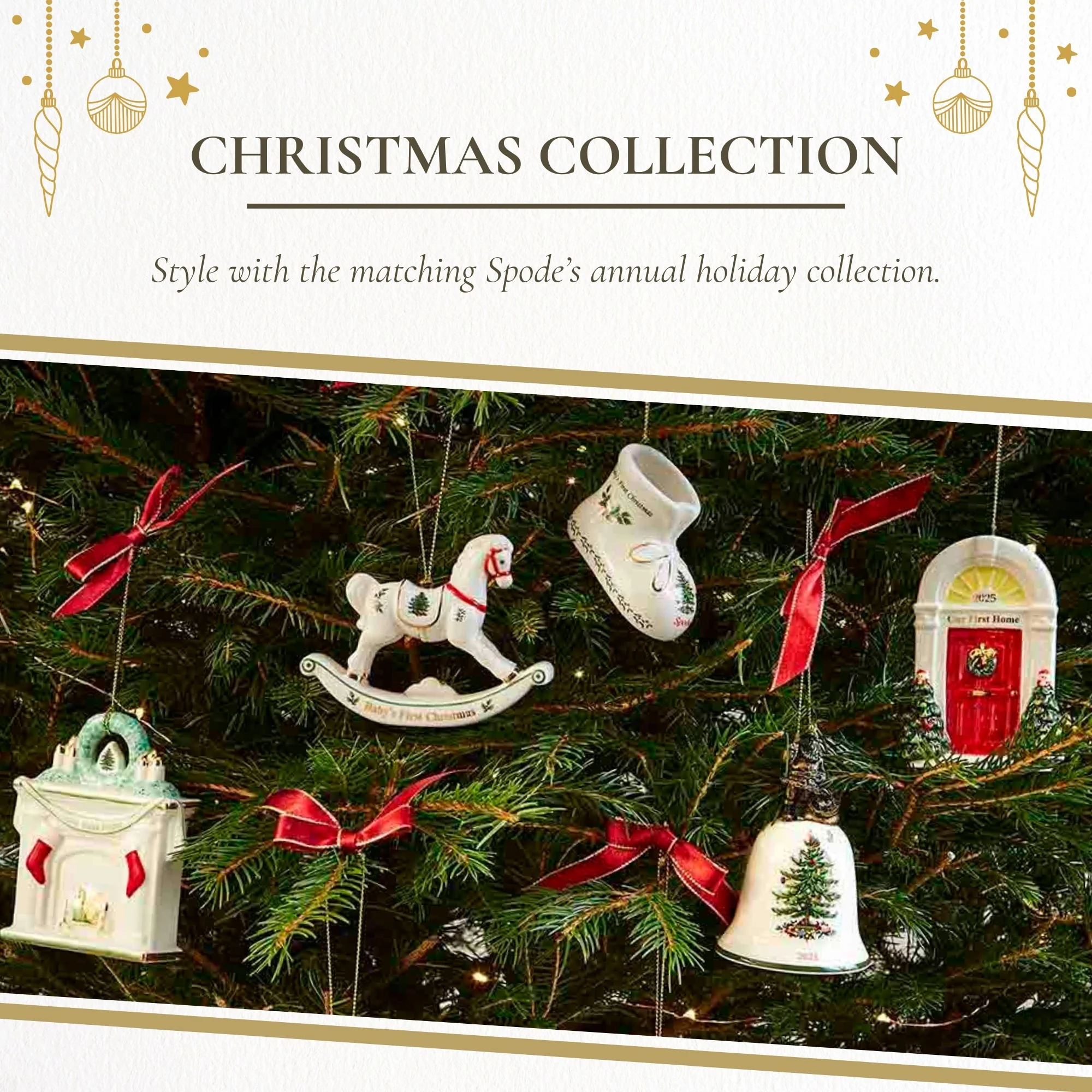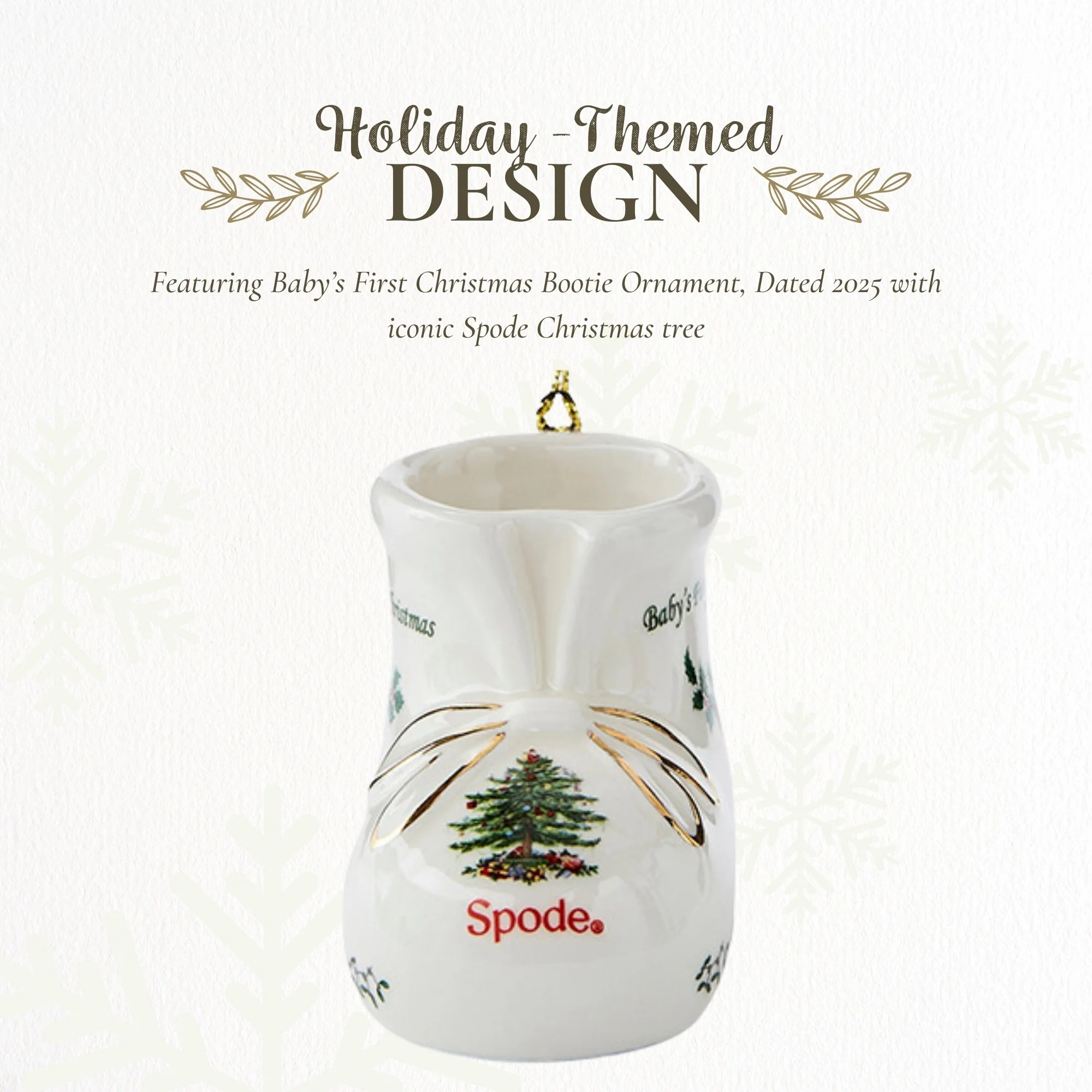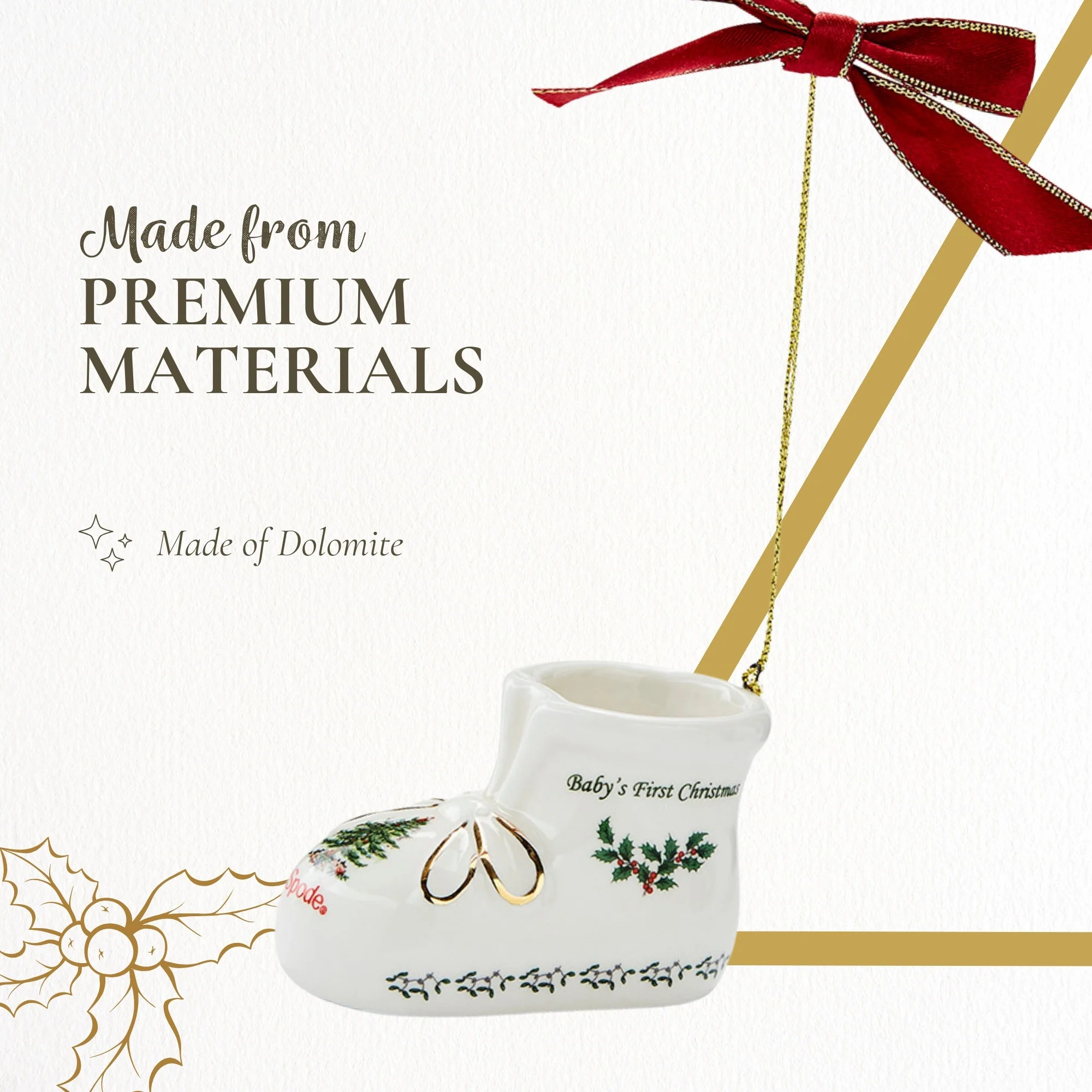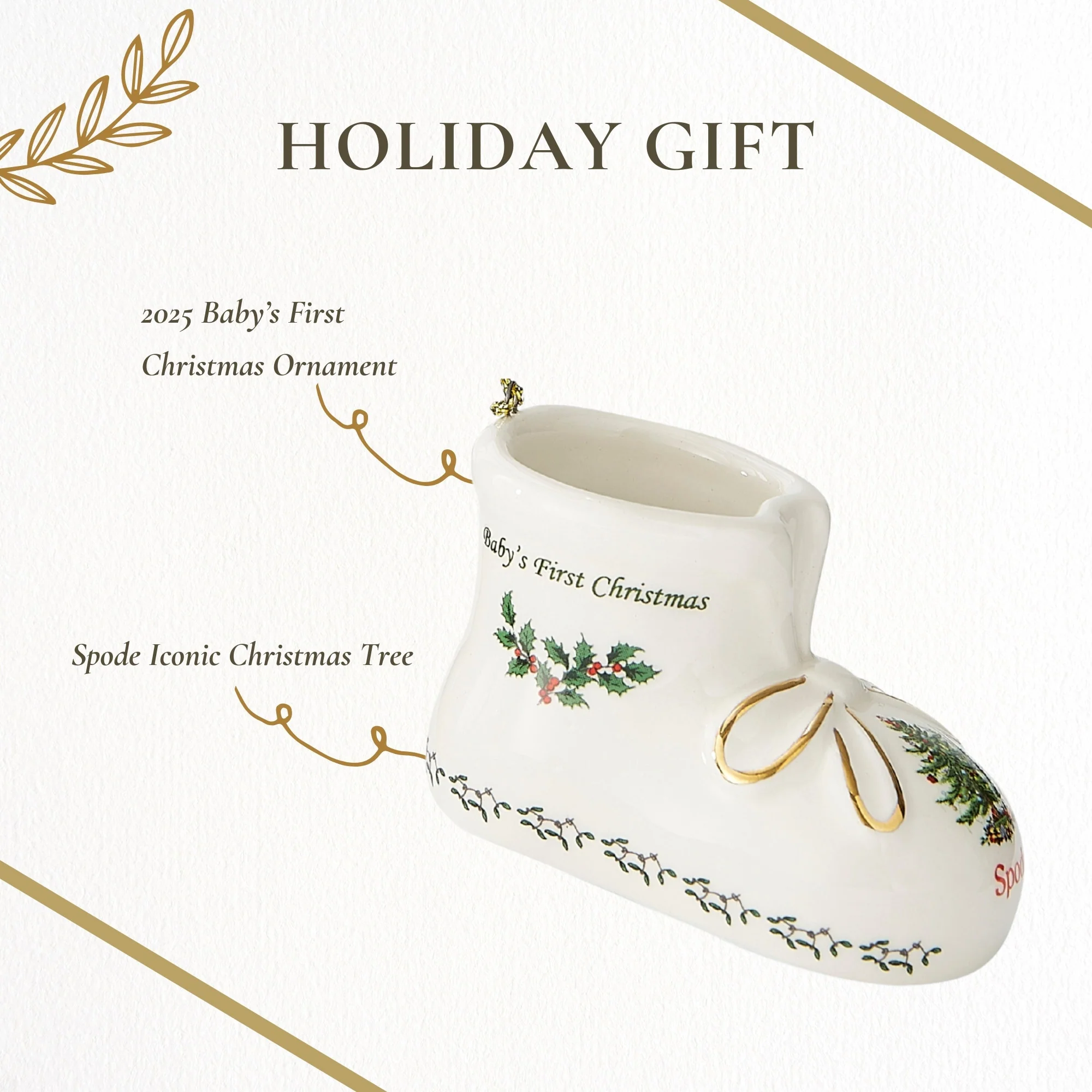 Spode Baby's First Bootie Ornament 2025 - Hand Painted Dolomite Christmas Ornament with Ribbon, Holiday Decor Featuring Boot Figurine, Dated Collectible Keepsake - Novelty Bauble Decoration - New