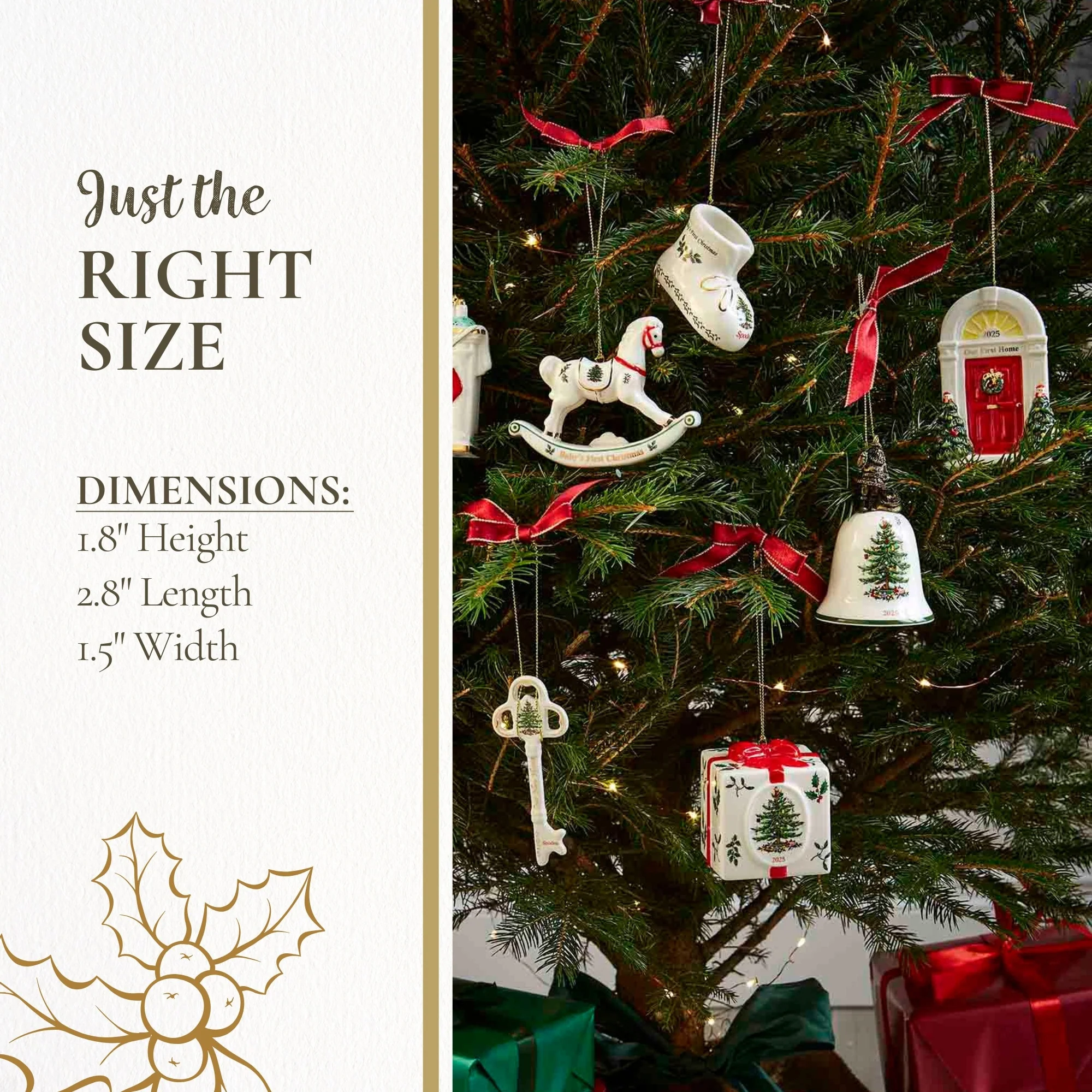 Celebrate the magic of the season with the Spode Baby's First Bootie Ornament 2025, a beautifully hand painted treasure that captures the heart of traditional Christmas decor. Crafted from durable dolomite, this collectible ornament features an elegant baby bootie decorated with holly, printed with the year 2025 to mark this year’s special memories. Designed with both artistry and sentiment, it’s more than just a decoration—it’s a holiday moment frozen in time. Whether you’re styling a classic evergreen, curating a tree with rustic Christmas decor ideas, or gifting a loved one who adores festive keepsakes, this ornament brings joyful energy and seasonal charm. The included ribbon allows you to hang it with ease on trees, garlands, or holiday wreaths. Pair it with other unique Christmas tree ornaments to create a display full of nostalgia and wonder. Embrace the spirit of giving and decorating with a piece that adds story and sparkle to your space. Ideal for collectors and holiday enthusiasts alike, this ornament is a heartwarming addition to your holiday home decor must-haves.