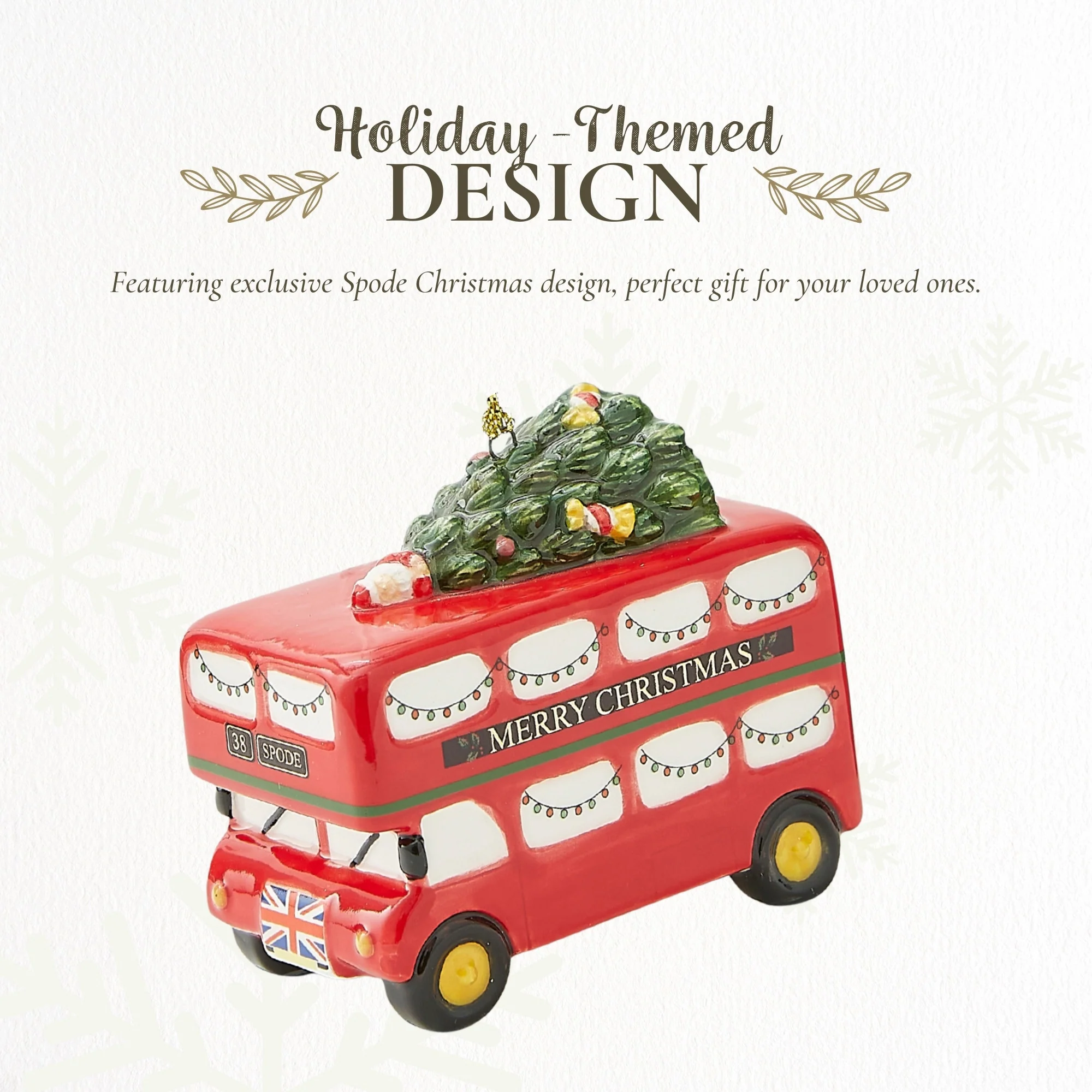 - Festive Tourist Charm: Add whimsical joy to your holiday decorations with this charming double decker bus, surrounded by Spode’s classic detailing and bright seasonal colors.