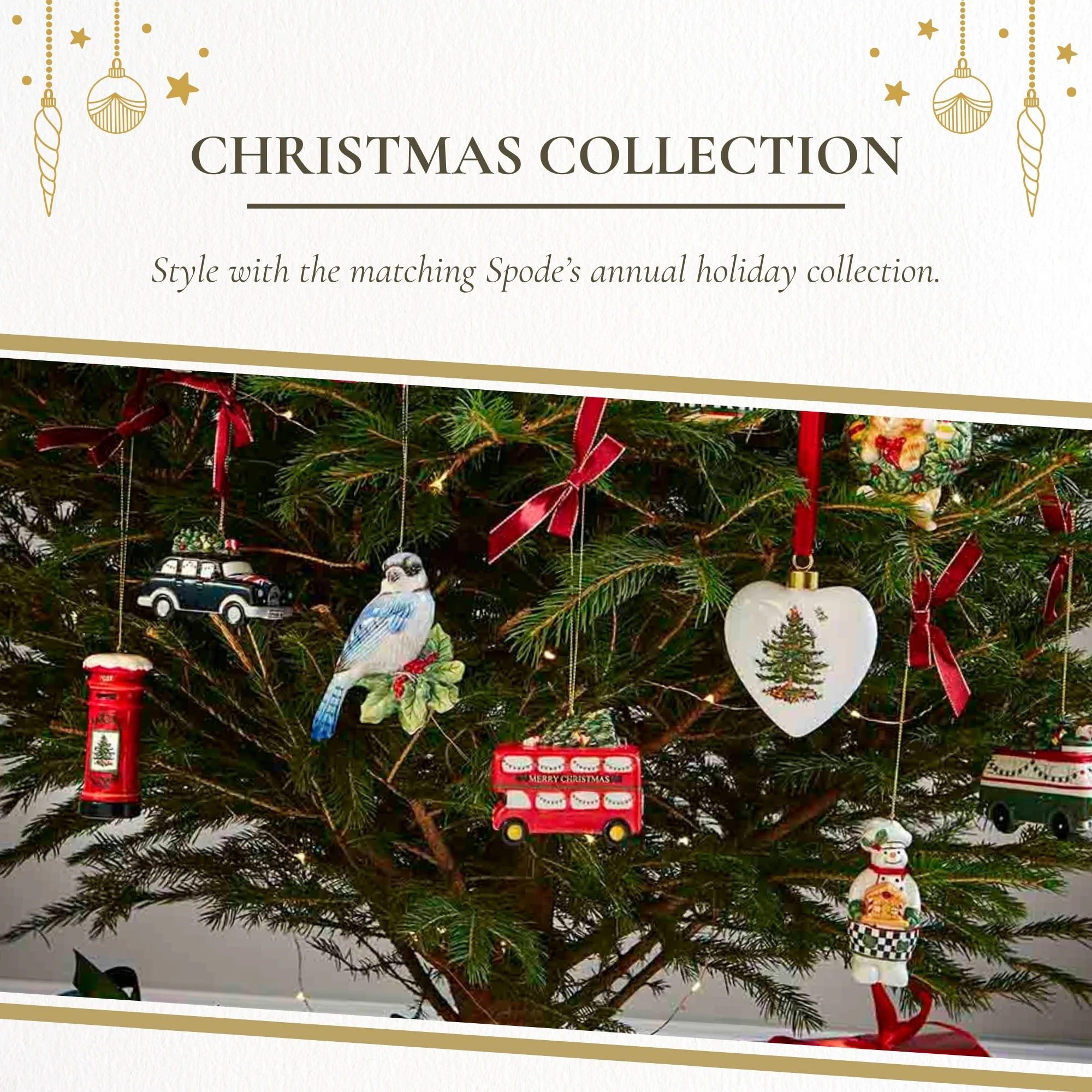 Spode Christmas Tree Brit Taxi Ornament - Dolomite Holiday Table Accent for Seasonal Displays - Coordinates with Christmas Dinnerware Set & Holiday Tableware Collection - Hand Painted Decor - New