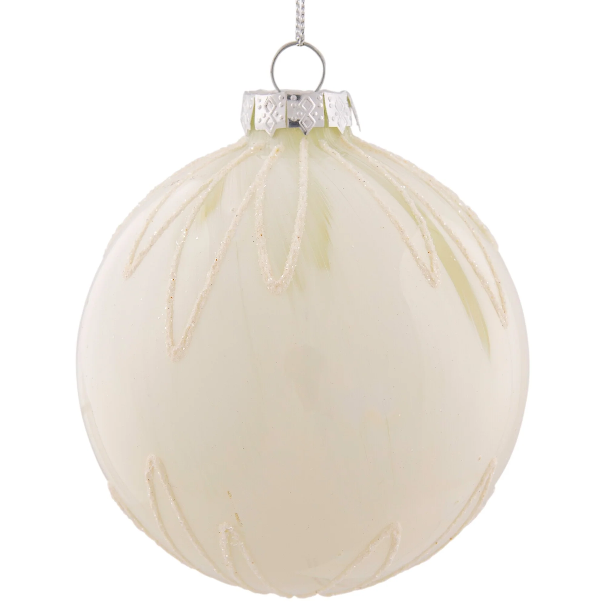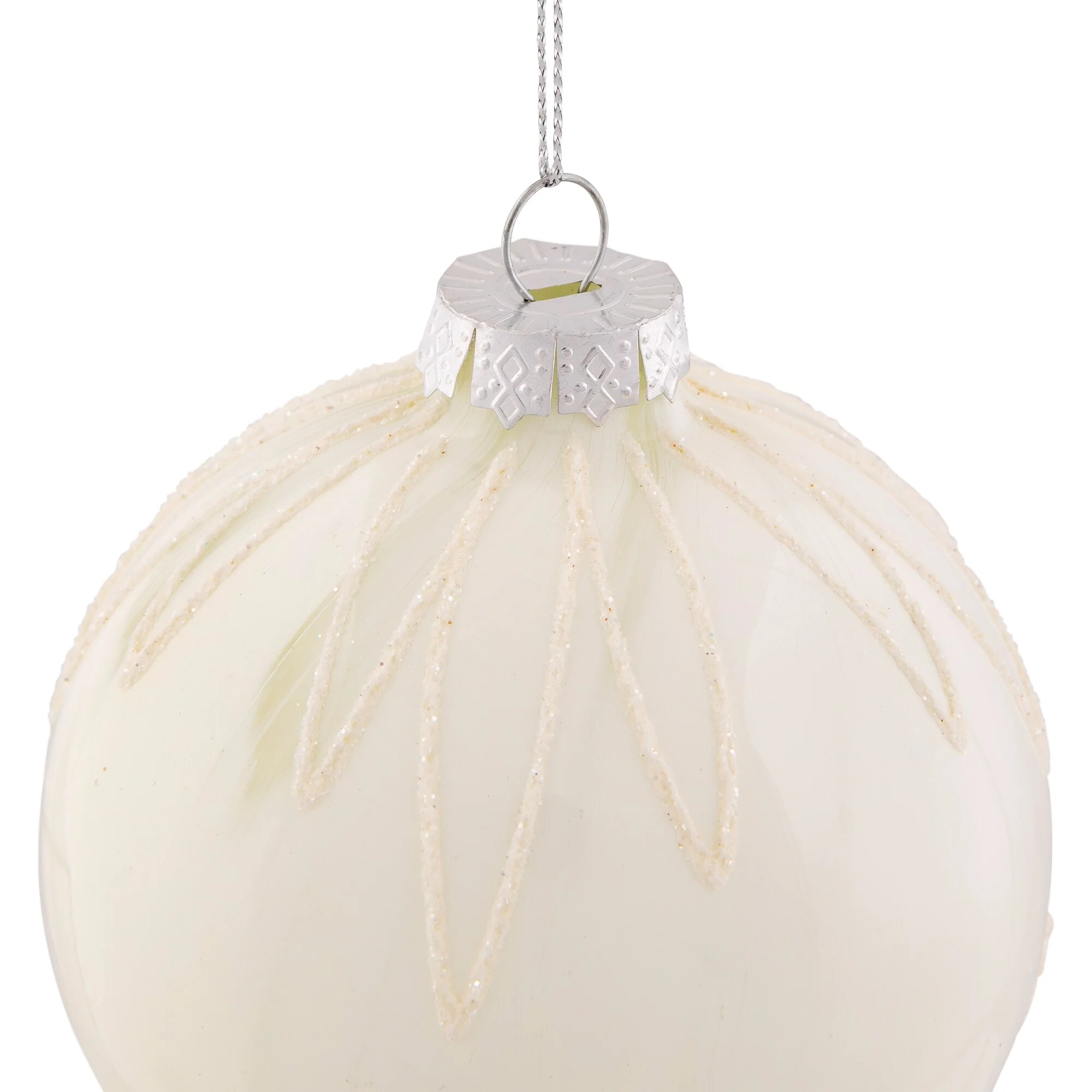 Glass ball ornaments are one of a kind! A classic shape with fresh designer colors, this ball ornament will allow you to build your collection quickly and decorate with more possibilities. This brushed white ornament with glittered starburst designs is great for Christmas and all the way through the New Year.