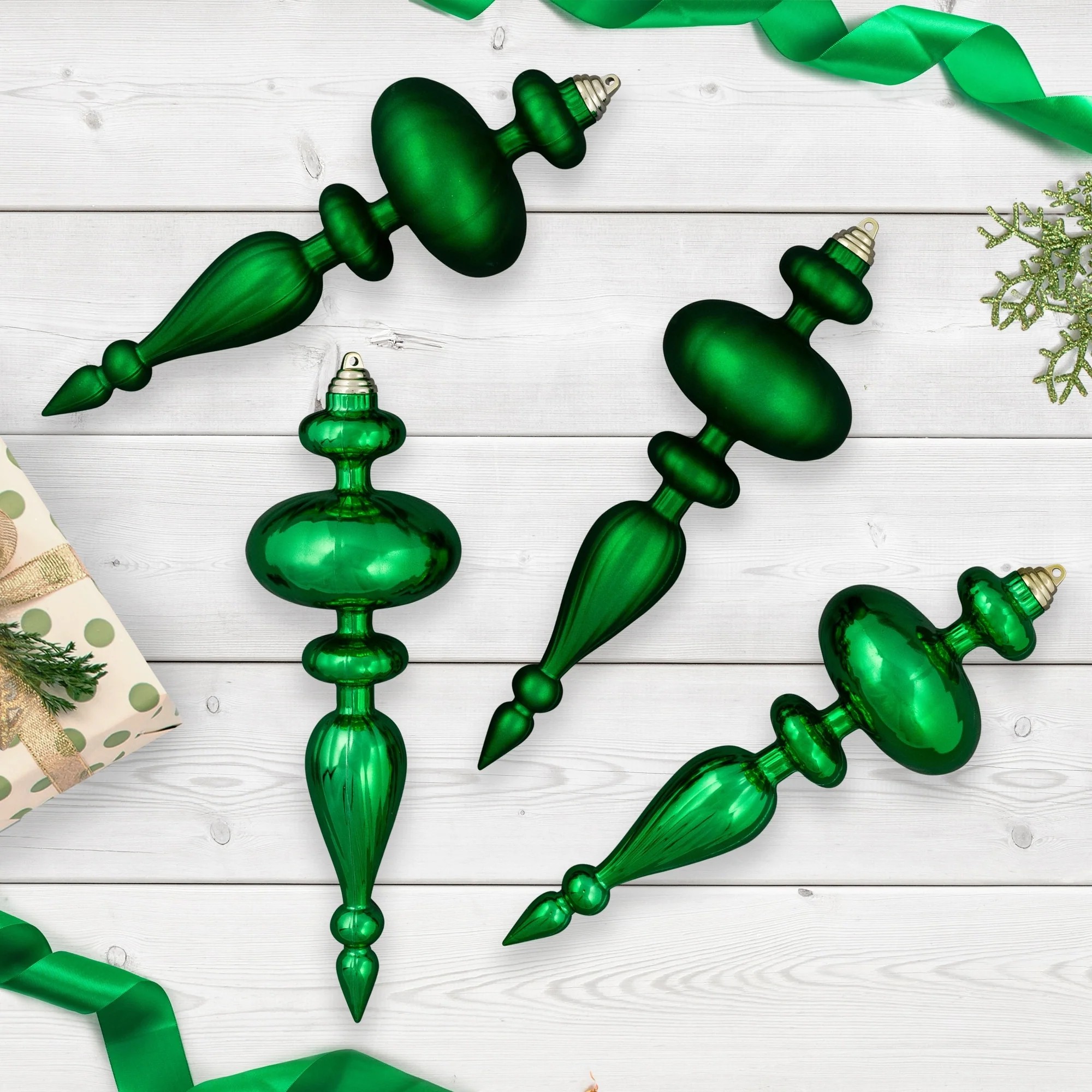 Shatterproof Commercial Size Finial Christmas Ornaments - 10" - Green - Set of 4