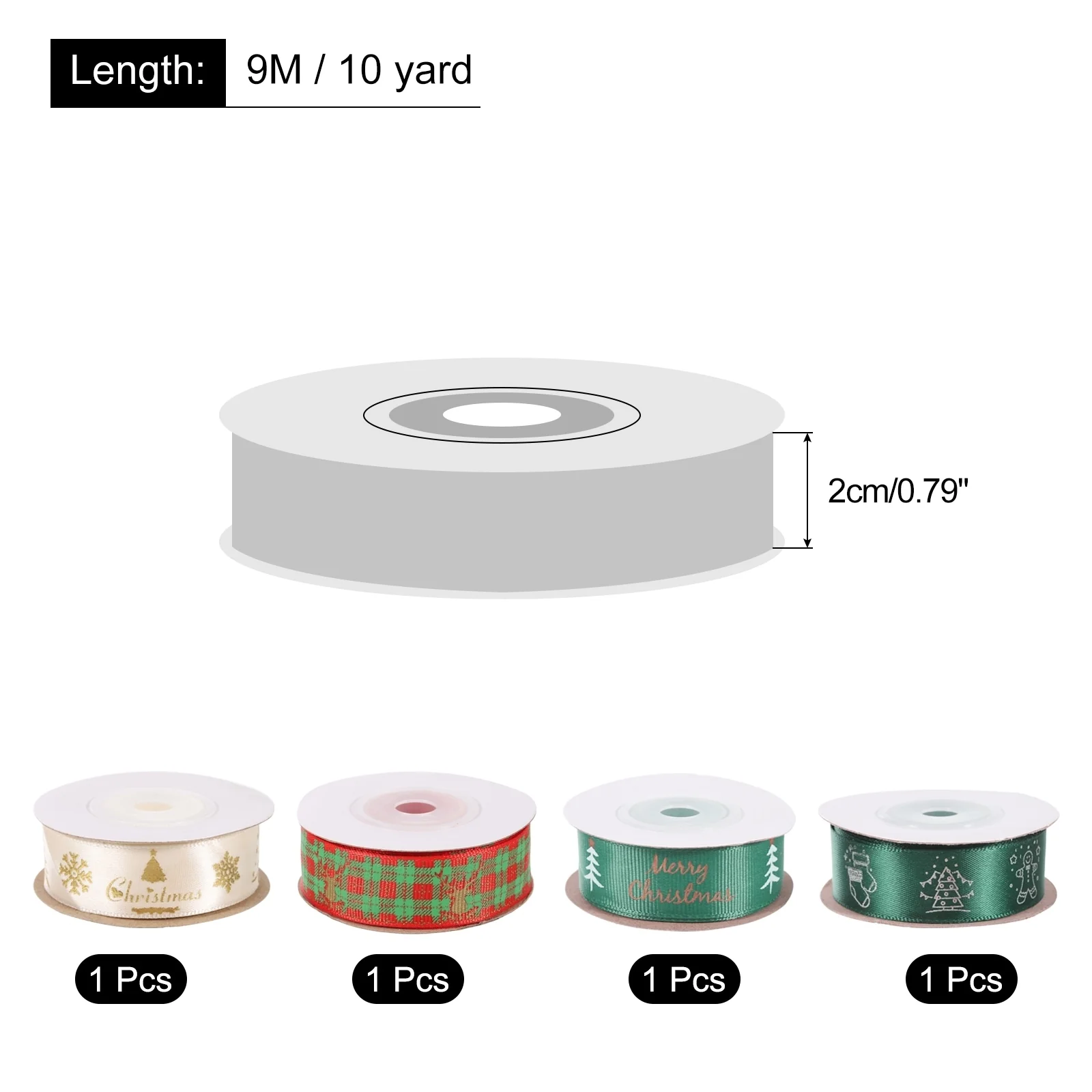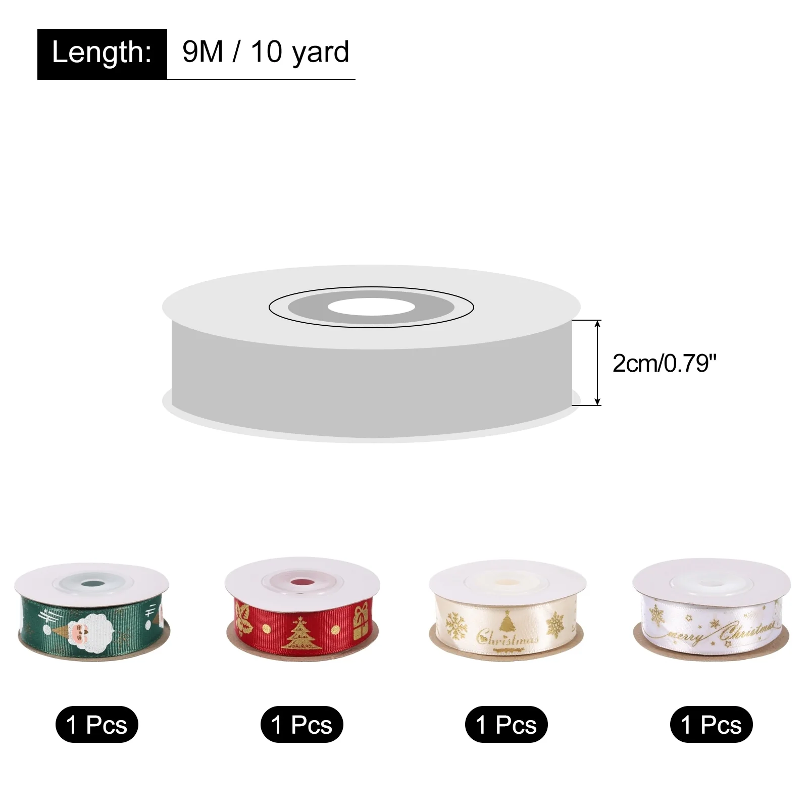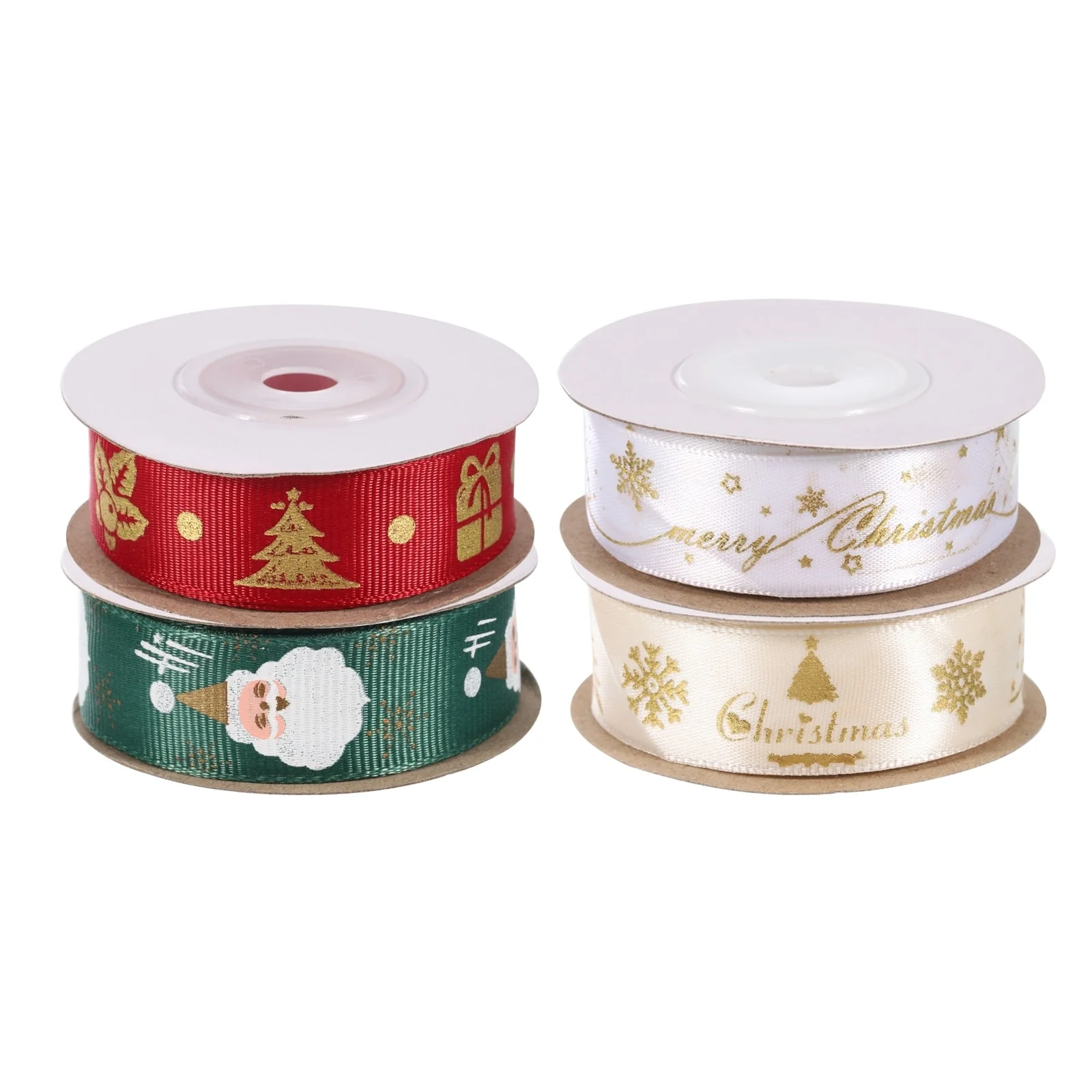 4 Roll Christmas Ribbons 10 Yards Christmas Tree Snowflake Santa Pattern