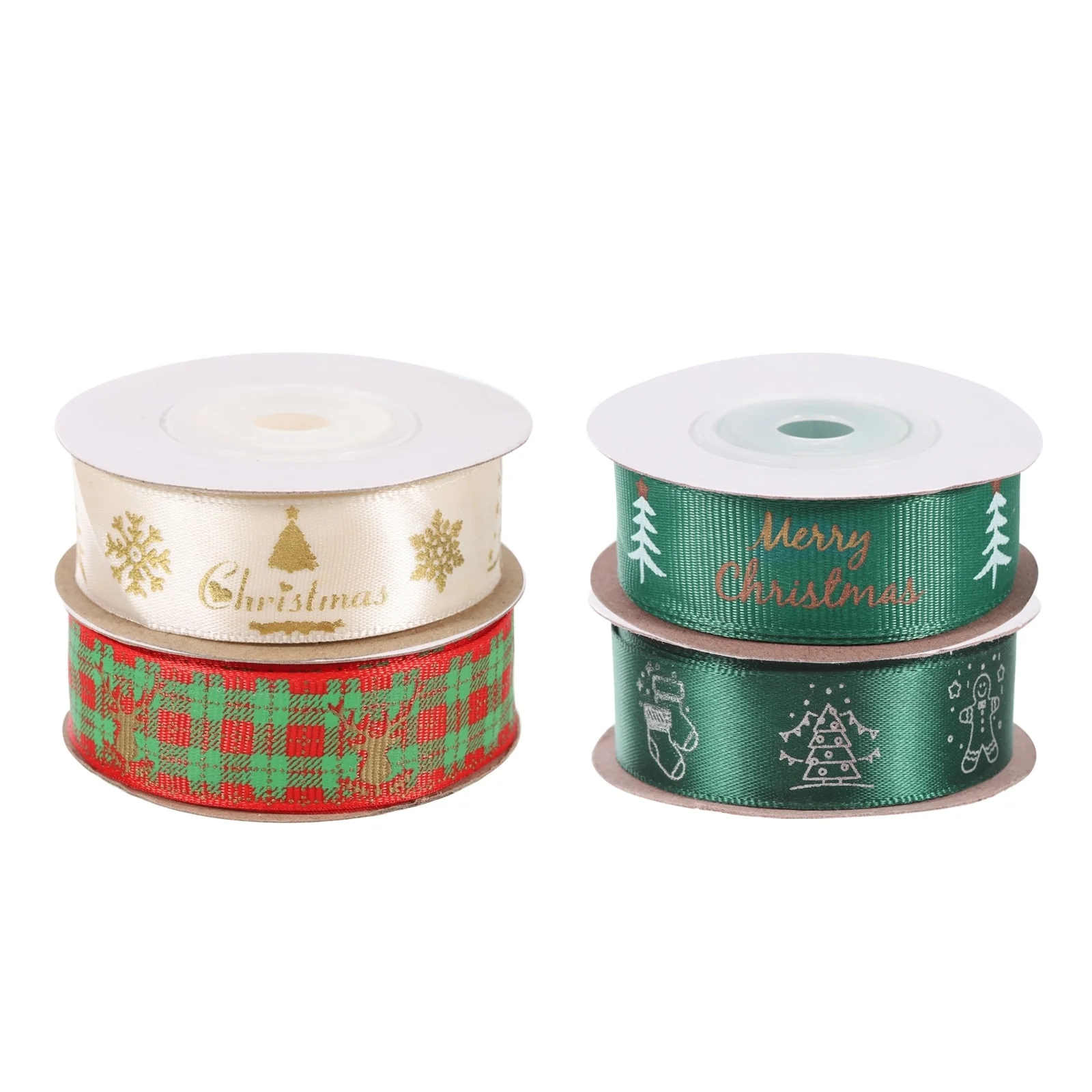4 Roll Christmas Ribbons 10 Yards Deer Christmas Tree Snowflake Pattern